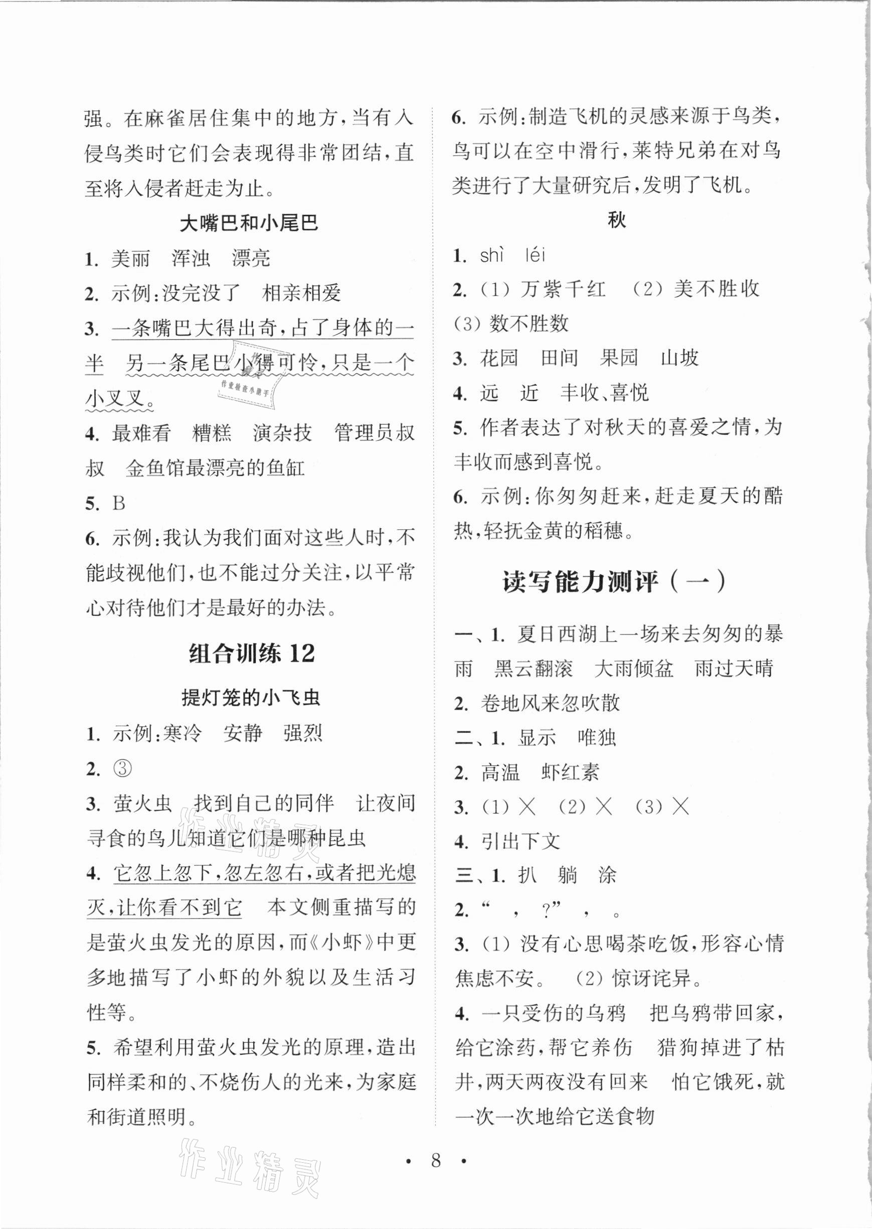 注:目前有些书本章节名称可能整理的还不是很完善,但都是按照顺序排列的,请同学们按照顺序仔细查找。练习册 2021年通城学典小学语文阅读与写作组合训练三年级下册通用版 答案主要是用来给同学们做完题方便对答案用的,请勿直接抄袭。