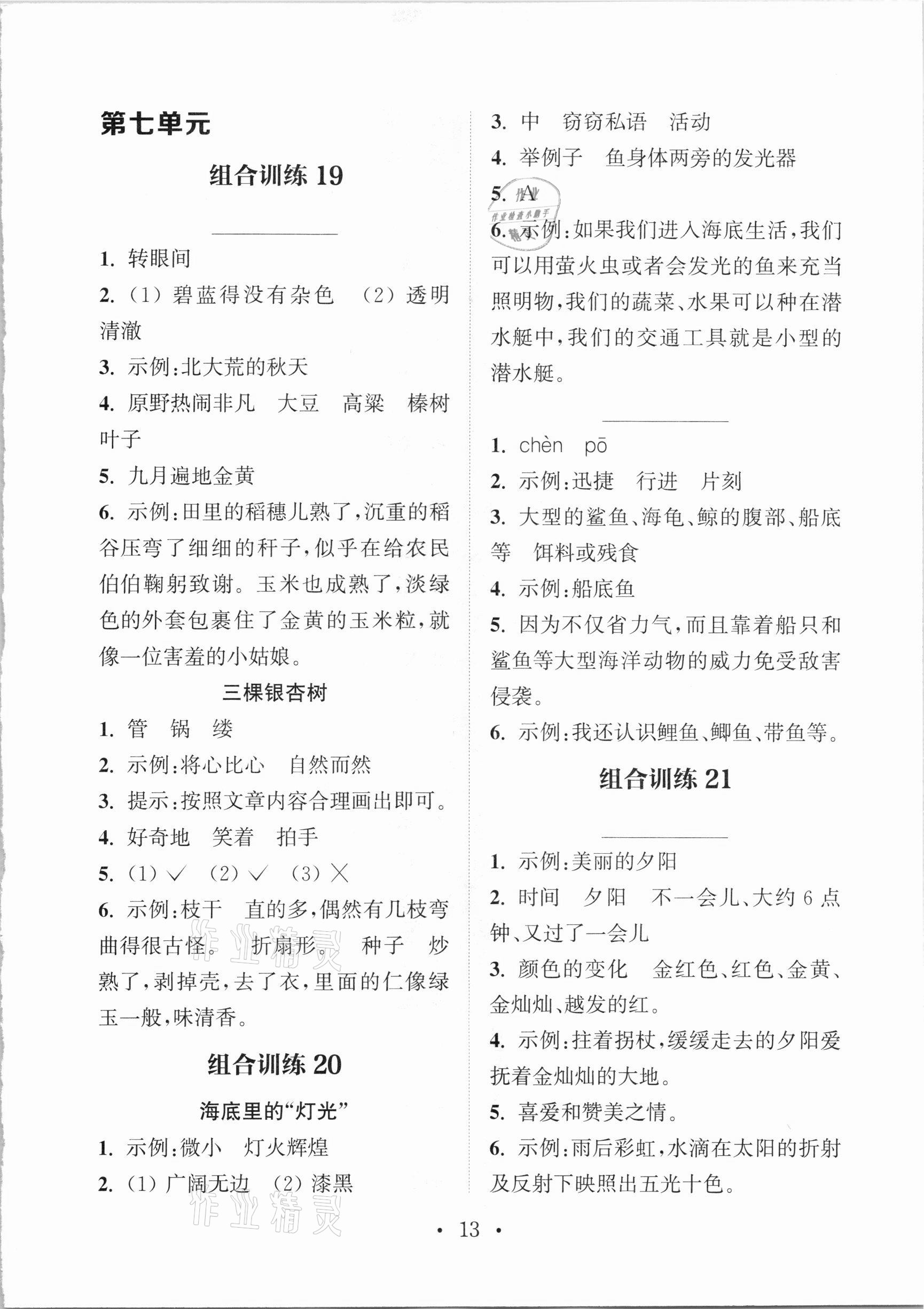 注:目前有些书本章节名称可能整理的还不是很完善,但都是按照顺序排列的,请同学们按照顺序仔细查找。练习册 2021年通城学典小学语文阅读与写作组合训练三年级下册通用版 答案主要是用来给同学们做完题方便对答案用的,请勿直接抄袭。