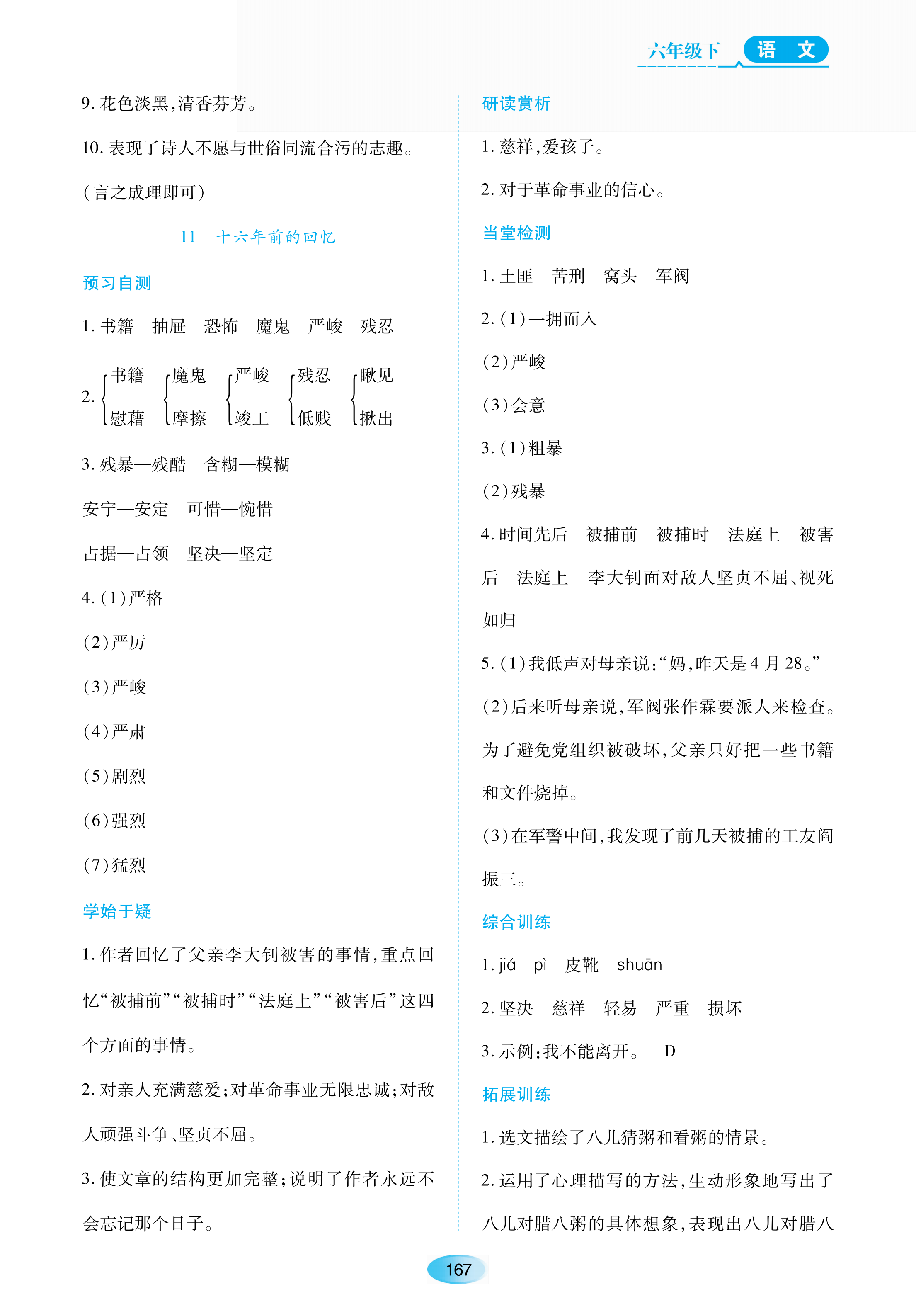 2021年资源与评价六年级语文下册人教版大庆专版黑龙江教育出版社