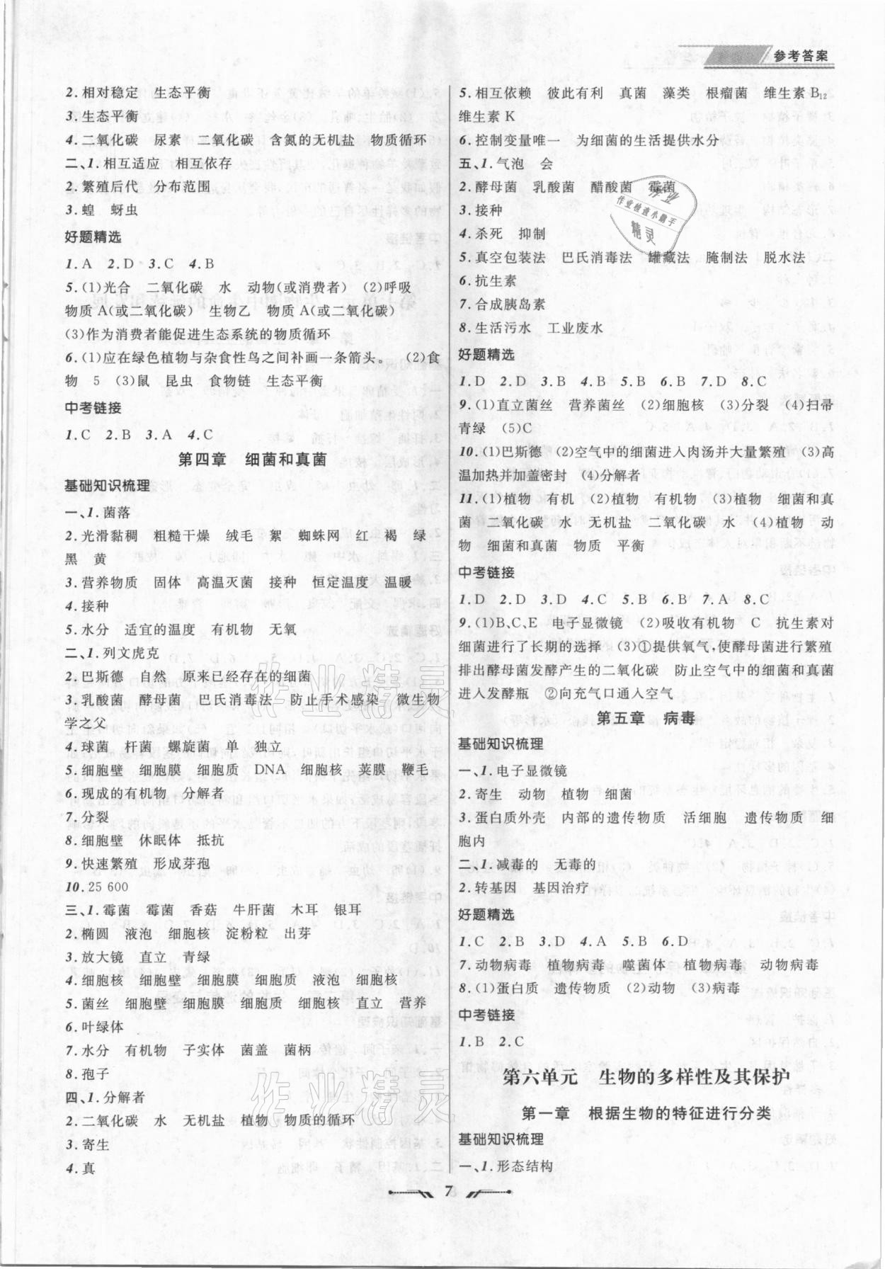 注:目前有些书本章节名称可能整理的还不是很完善,但都是按照顺序排列的,请同学们按照顺序仔细查找。练习册 2021年中考全程复习训练生物丹东专版 答案主要是用来给同学们做完题方便对答案用的,请勿直接抄袭。