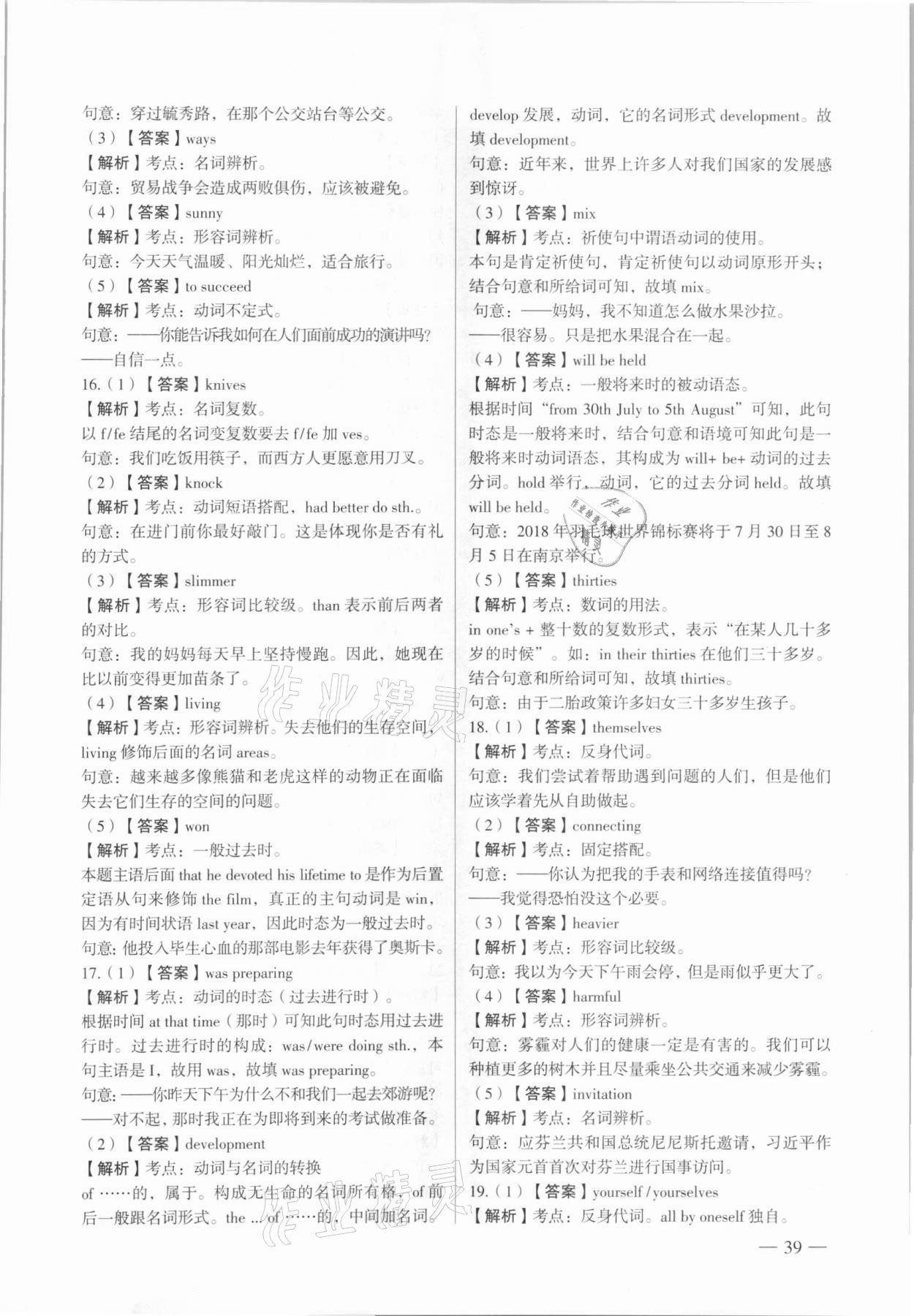 注:目前有些书本章节名称可能整理的还不是很完善,但都是按照顺序排列的,请同学们按照顺序仔细查找。练习册 2021年南京市各区三年中考模拟卷分类详解英语 答案主要是用来给同学们做完题方便对答案用的,请勿直接抄袭。