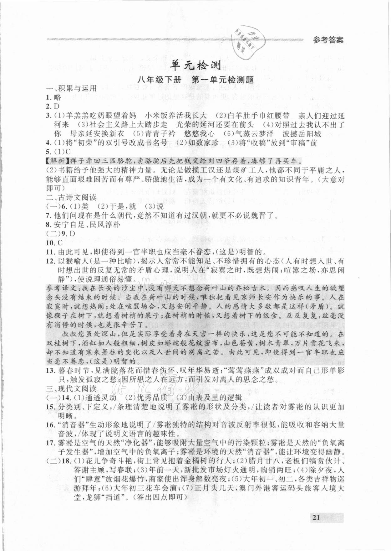 注:目前有些书本章节名称可能整理的还不是很完善,但都是按照顺序排列的,请同学们按照顺序仔细查找。练习册 2021年点石成金金牌每课通八年级语文下册人教版大连专版 答案主要是用来给同学们做完题方便对答案用的,请勿直接抄袭。