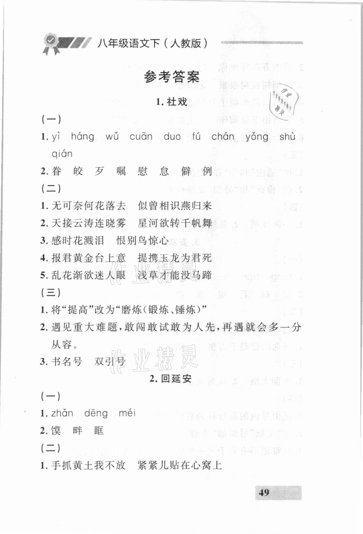 注:目前有些书本章节名称可能整理的还不是很完善,但都是按照顺序排列的,请同学们按照顺序仔细查找。练习册 2021年点石成金金牌每课通八年级语文下册人教版大连专版 答案主要是用来给同学们做完题方便对答案用的,请勿直接抄袭。