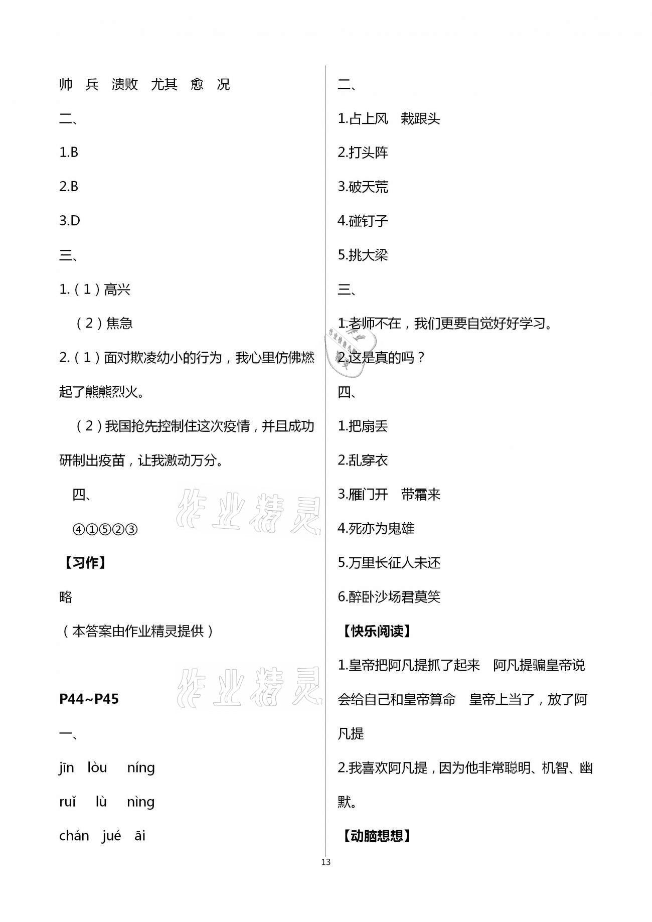 注:目前有些书本章节名称可能整理的还不是很完善,但都是按照顺序排列的,请同学们按照顺序仔细查找。练习册 2021年寒假作业四年级语文人教版海燕出版社 答案主要是用来给同学们做完题方便对答案用的,请勿直接抄袭。