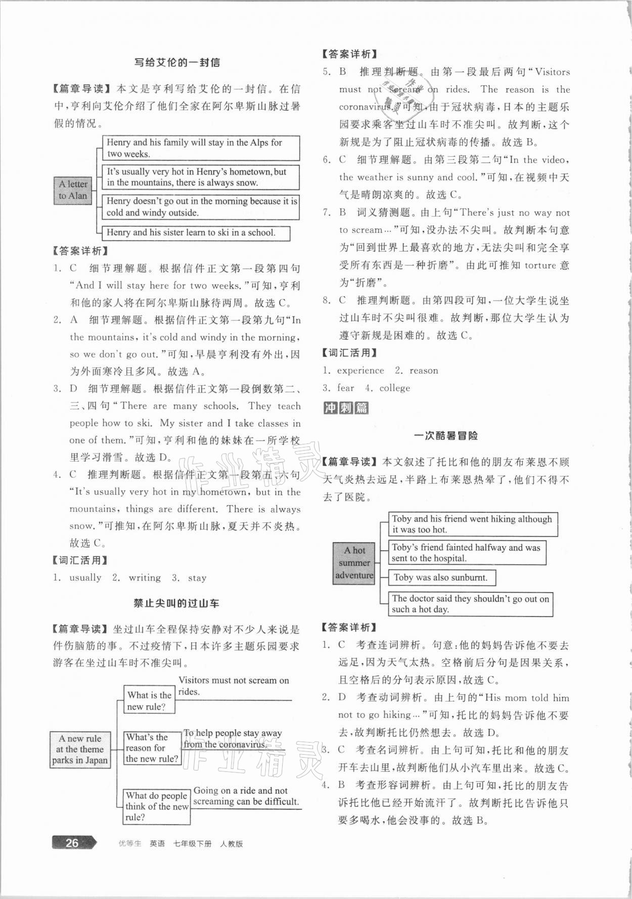 注:目前有些书本章节名称可能整理的还不是很完善,但都是按照顺序排列的,请同学们按照顺序仔细查找。练习册 2021年全品优等生七年级英语下册人教版浙江专版 答案主要是用来给同学们做完题方便对答案用的,请勿直接抄袭。