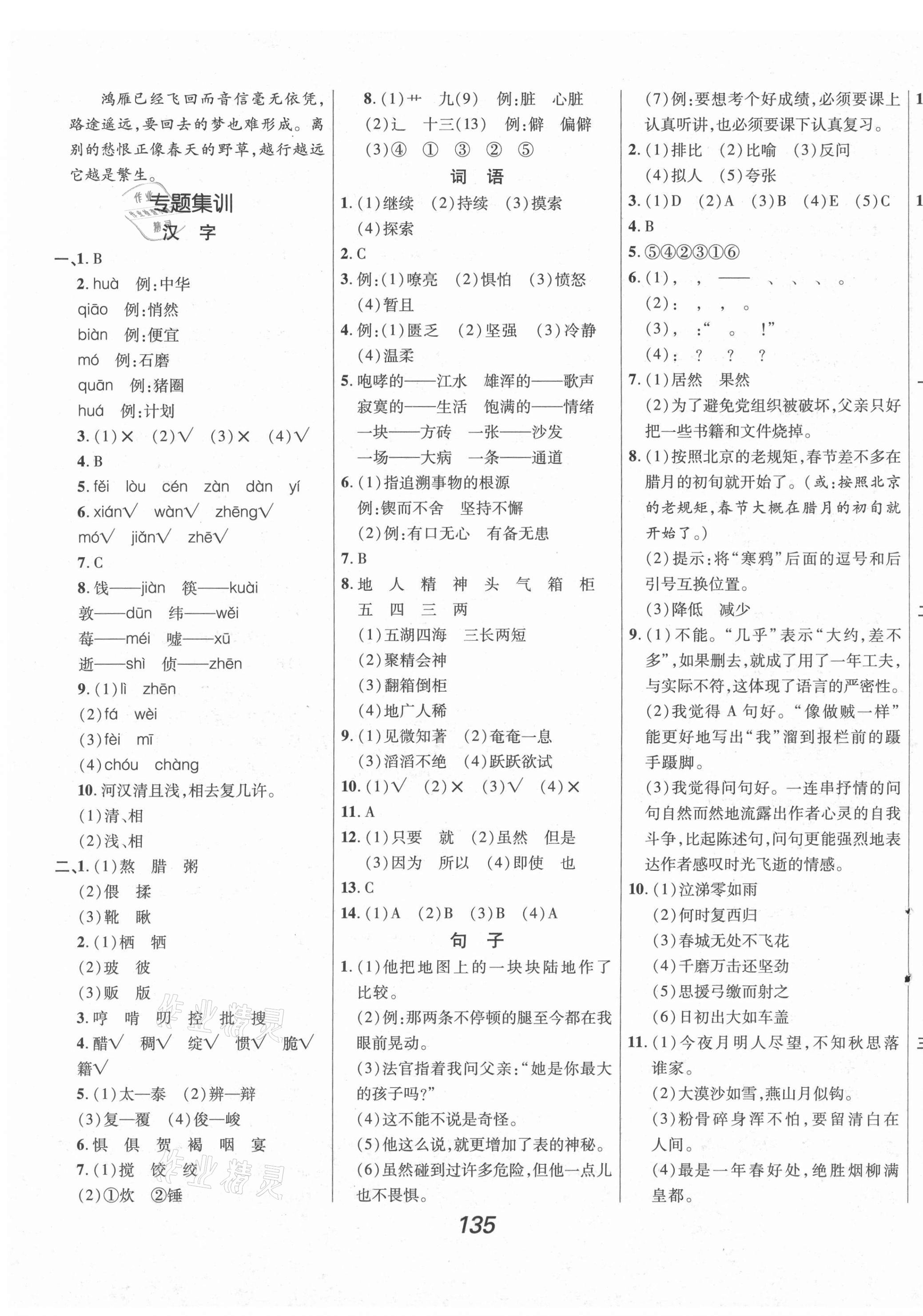 注:目前有些书本章节名称可能整理的还不是很完善,但都是按照顺序排列的,请同学们按照顺序仔细查找。练习册 2021年全优课堂考点集训与满分备考六年级语文下册人教版河北专版 答案主要是用来给同学们做完题方便对答案用的,请勿直接抄袭。