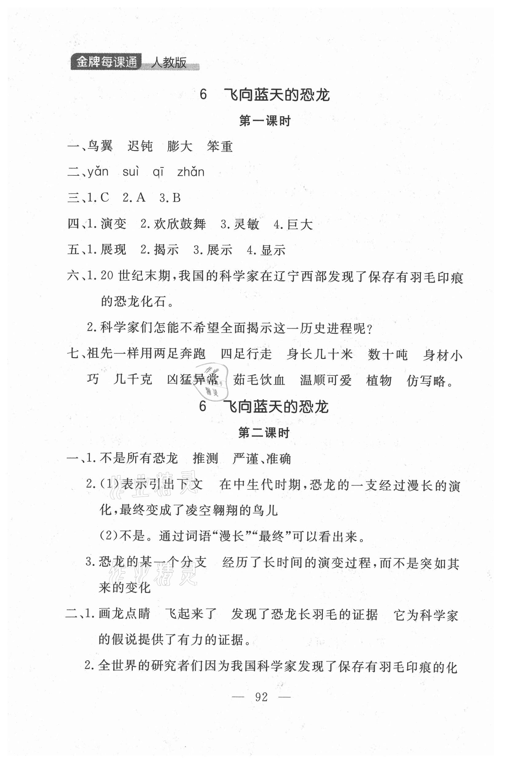 2021年点石成金金牌每课通四年级语文下册人教版大连专版
