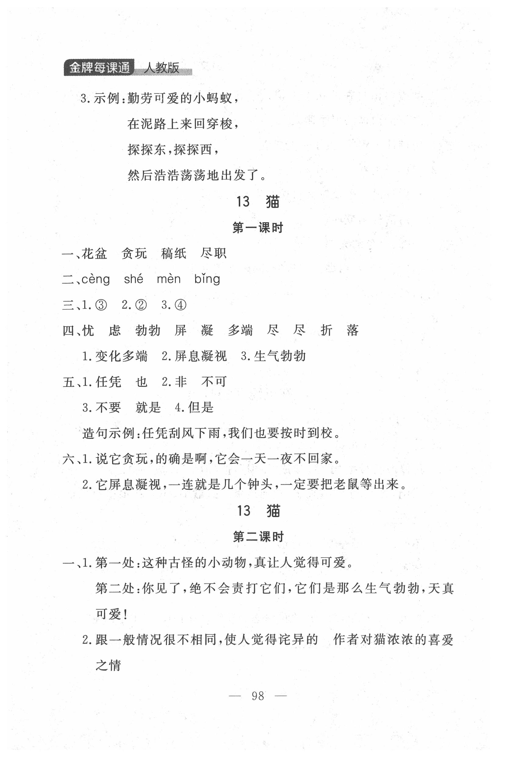 注:目前有些书本章节名称可能整理的还不是很完善,但都是按照顺序排列的,请同学们按照顺序仔细查找。练习册 2021年点石成金金牌每课通四年级语文下册人教版大连专版 答案主要是用来给同学们做完题方便对答案用的,请勿直接抄袭。