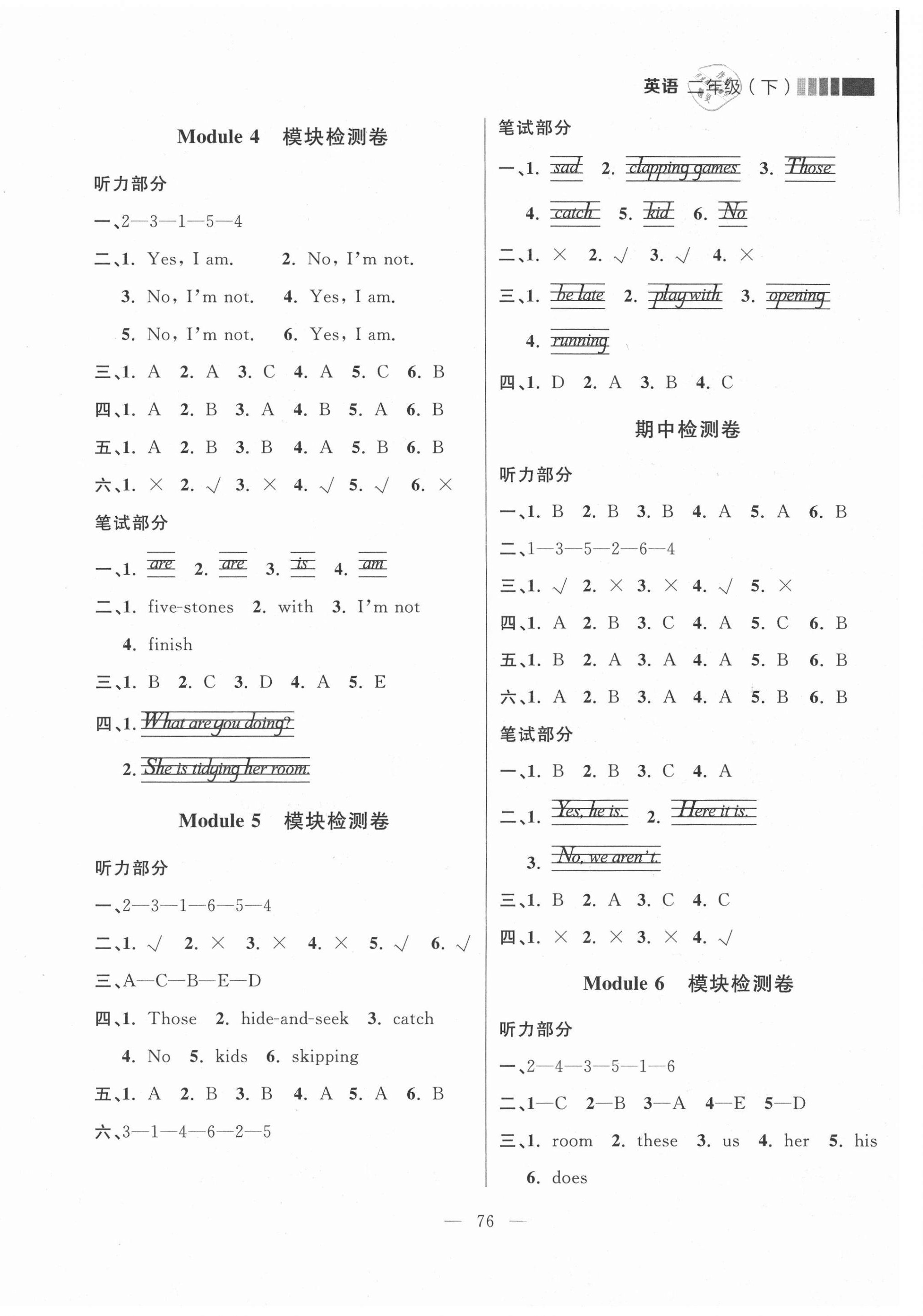 注:目前有些书本章节名称可能整理的还不是很完善,但都是按照顺序排列的,请同学们按照顺序仔细查找。练习册 2021年点石成金金牌每课通二年级英语下册外研版大连专版 答案主要是用来给同学们做完题方便对答案用的,请勿直接抄袭。