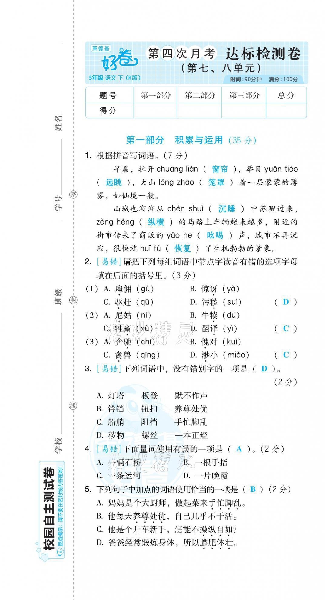 注:目前有些书本章节名称可能整理的还不是很完善,但都是按照顺序排列的,请同学们按照顺序仔细查找。练习册 2021年好卷五年级语文下册人教版福建专版 答案主要是用来给同学们做完题方便对答案用的,请勿直接抄袭。