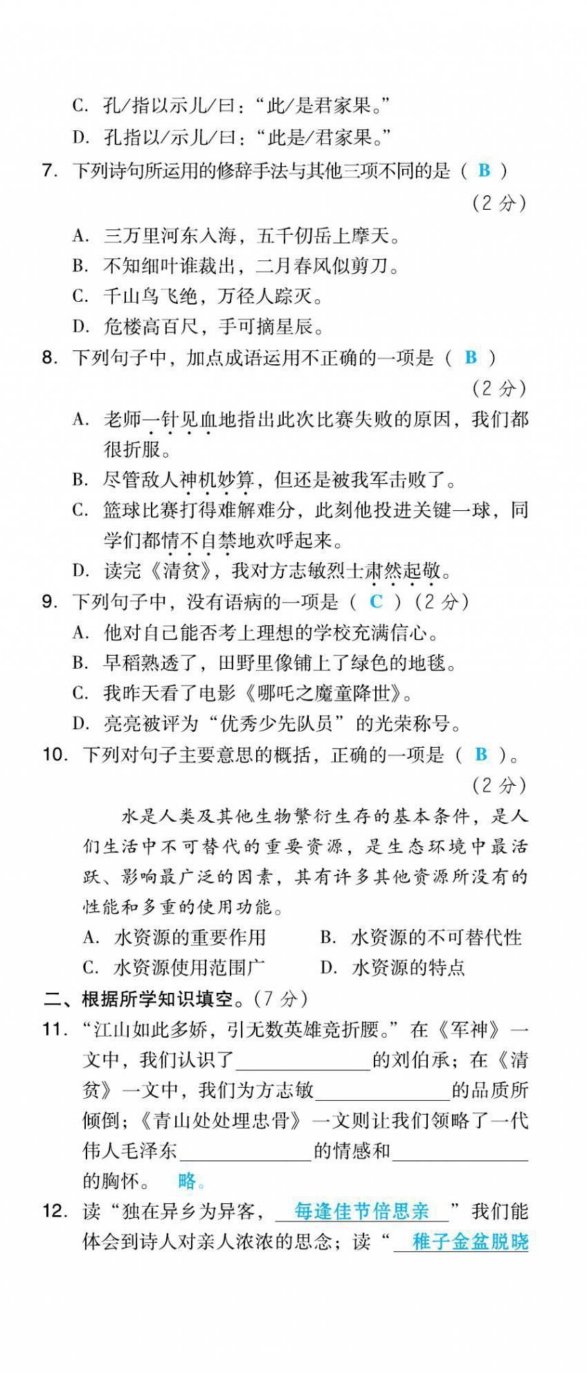 注:目前有些书本章节名称可能整理的还不是很完善,但都是按照顺序排列的,请同学们按照顺序仔细查找。练习册 2021年好卷五年级语文下册人教版福建专版 答案主要是用来给同学们做完题方便对答案用的,请勿直接抄袭。