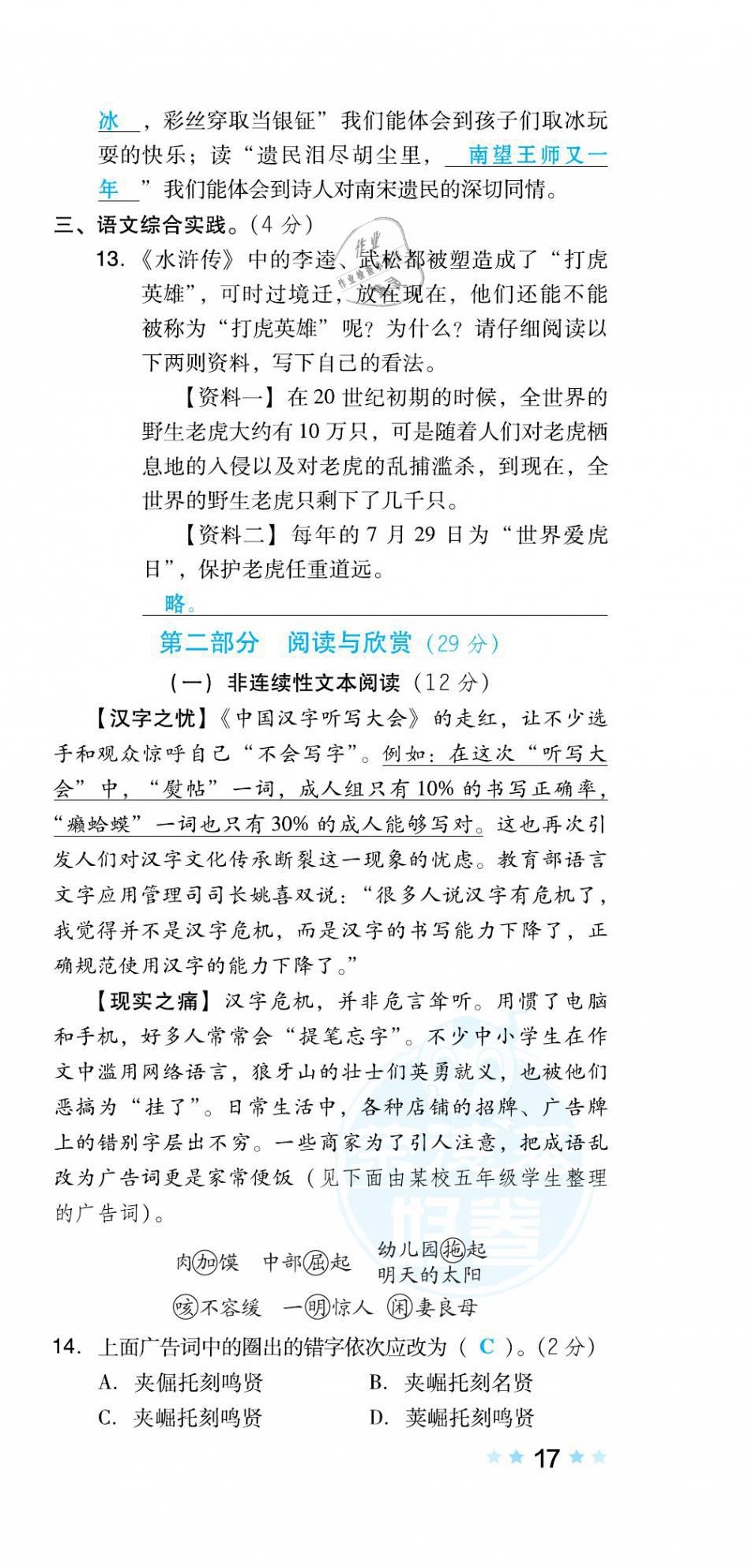 注:目前有些书本章节名称可能整理的还不是很完善,但都是按照顺序排列的,请同学们按照顺序仔细查找。练习册 2021年好卷五年级语文下册人教版福建专版 答案主要是用来给同学们做完题方便对答案用的,请勿直接抄袭。