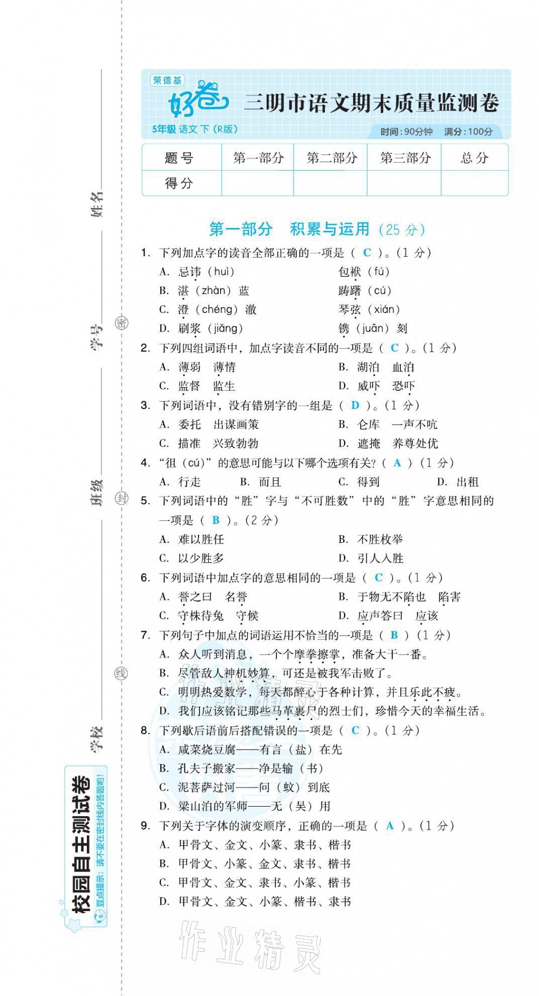 注:目前有些书本章节名称可能整理的还不是很完善,但都是按照顺序排列的,请同学们按照顺序仔细查找。练习册 2021年好卷五年级语文下册人教版福建专版 答案主要是用来给同学们做完题方便对答案用的,请勿直接抄袭。