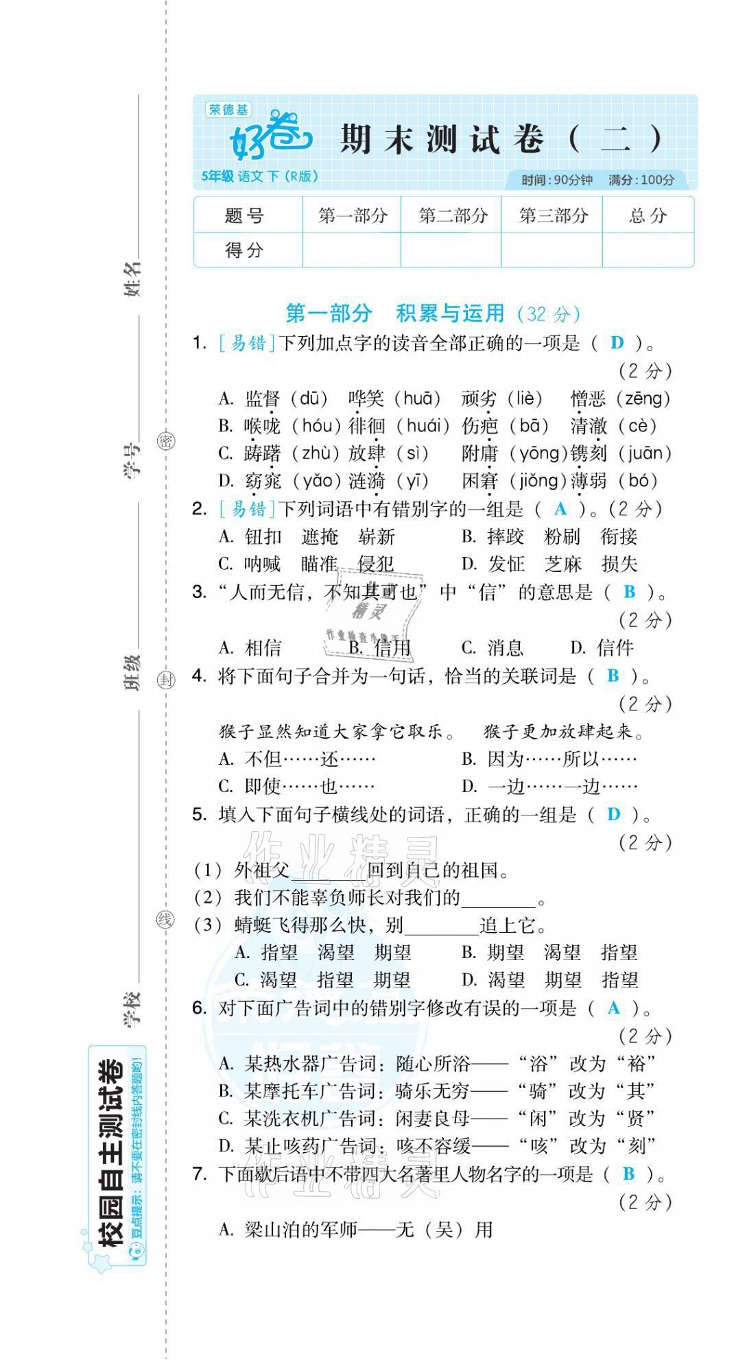 注:目前有些书本章节名称可能整理的还不是很完善,但都是按照顺序排列的,请同学们按照顺序仔细查找。练习册 2021年好卷五年级语文下册人教版福建专版 答案主要是用来给同学们做完题方便对答案用的,请勿直接抄袭。