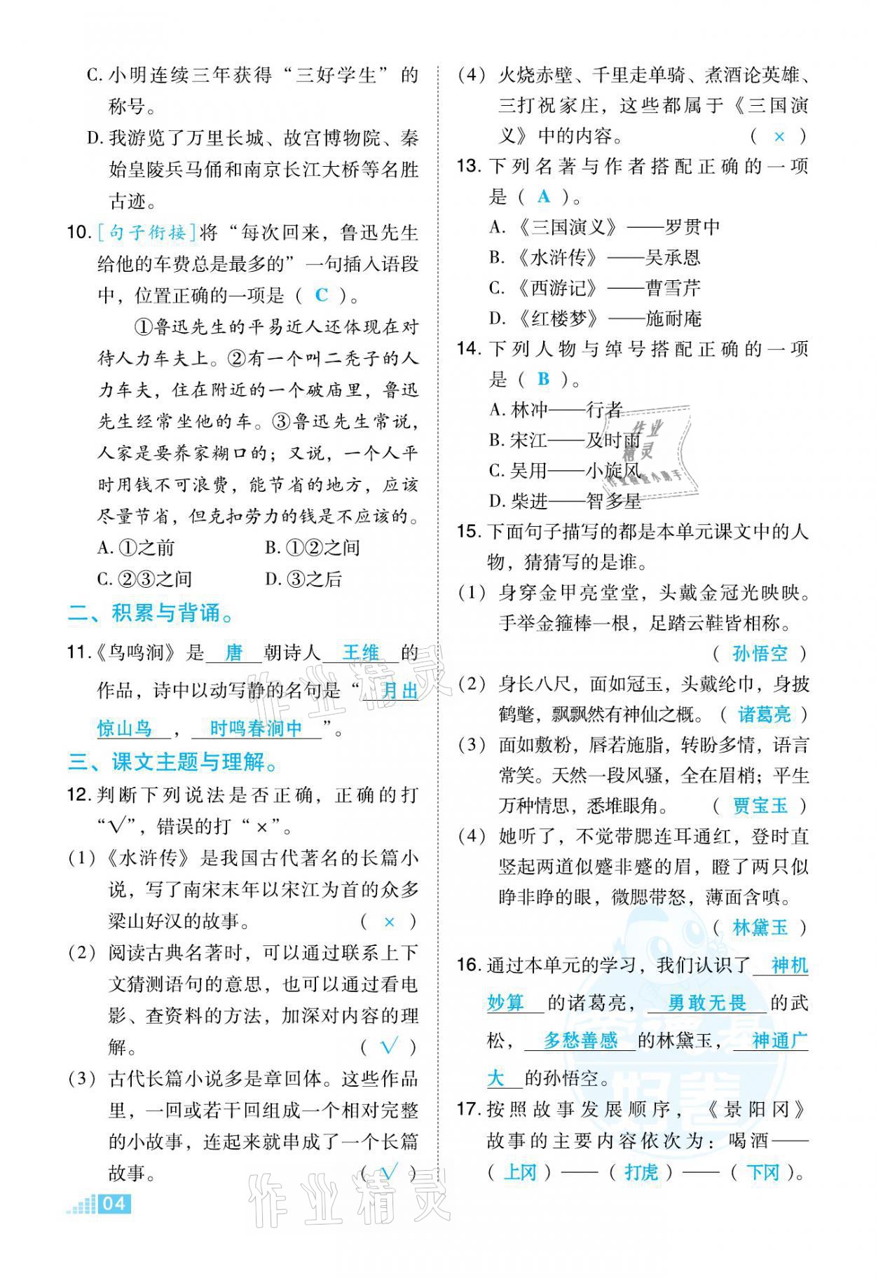 注:目前有些书本章节名称可能整理的还不是很完善,但都是按照顺序排列的,请同学们按照顺序仔细查找。练习册 2021年好卷五年级语文下册人教版福建专版 答案主要是用来给同学们做完题方便对答案用的,请勿直接抄袭。