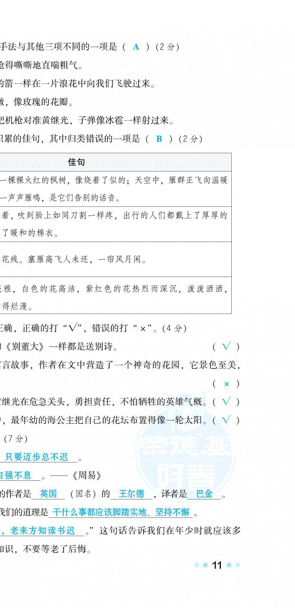 注:目前有些书本章节名称可能整理的还不是很完善,但都是按照顺序排列的,请同学们按照顺序仔细查找。练习册 2021年好卷四年级语文下册人教版福建专版 答案主要是用来给同学们做完题方便对答案用的,请勿直接抄袭。