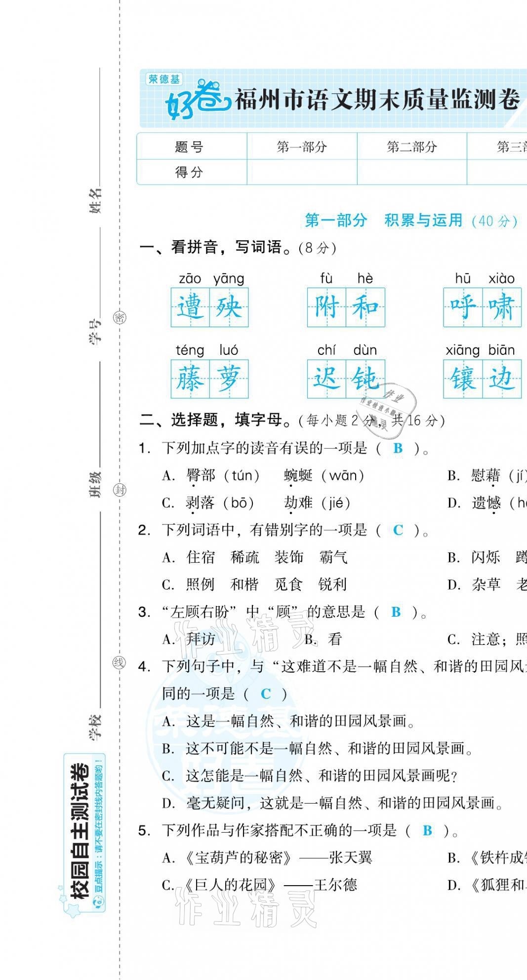 注:目前有些书本章节名称可能整理的还不是很完善,但都是按照顺序排列的,请同学们按照顺序仔细查找。练习册 2021年好卷四年级语文下册人教版福建专版 答案主要是用来给同学们做完题方便对答案用的,请勿直接抄袭。