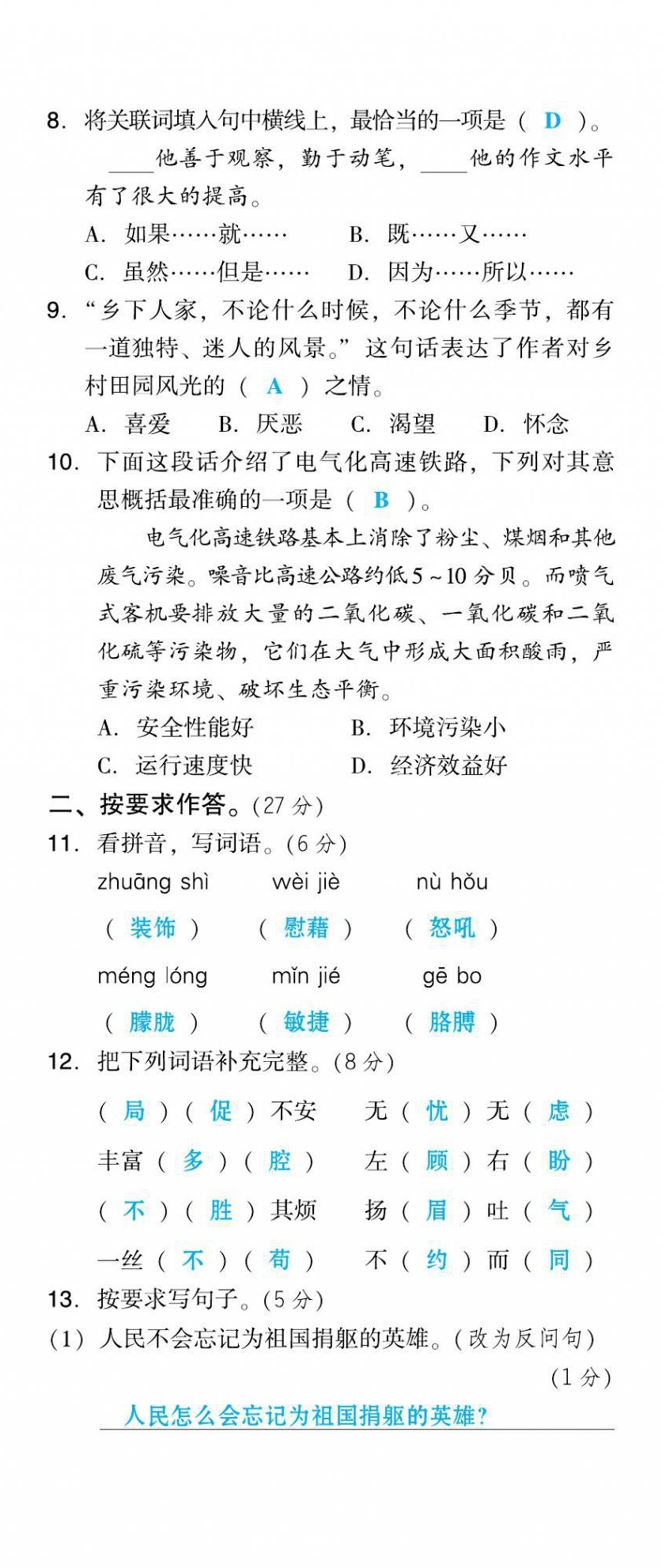 注:目前有些书本章节名称可能整理的还不是很完善,但都是按照顺序排列的,请同学们按照顺序仔细查找。练习册 2021年好卷四年级语文下册人教版福建专版 答案主要是用来给同学们做完题方便对答案用的,请勿直接抄袭。