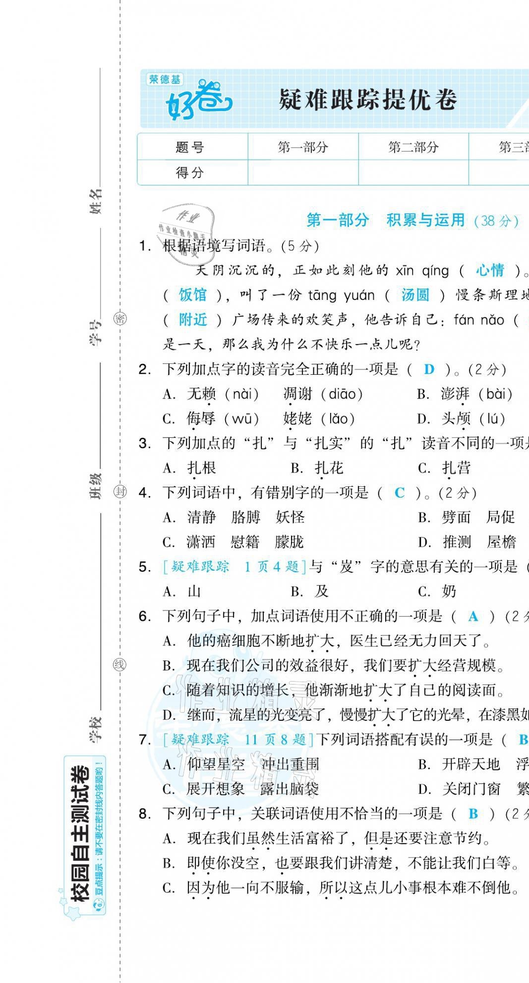 注:目前有些书本章节名称可能整理的还不是很完善,但都是按照顺序排列的,请同学们按照顺序仔细查找。练习册 2021年好卷四年级语文下册人教版福建专版 答案主要是用来给同学们做完题方便对答案用的,请勿直接抄袭。