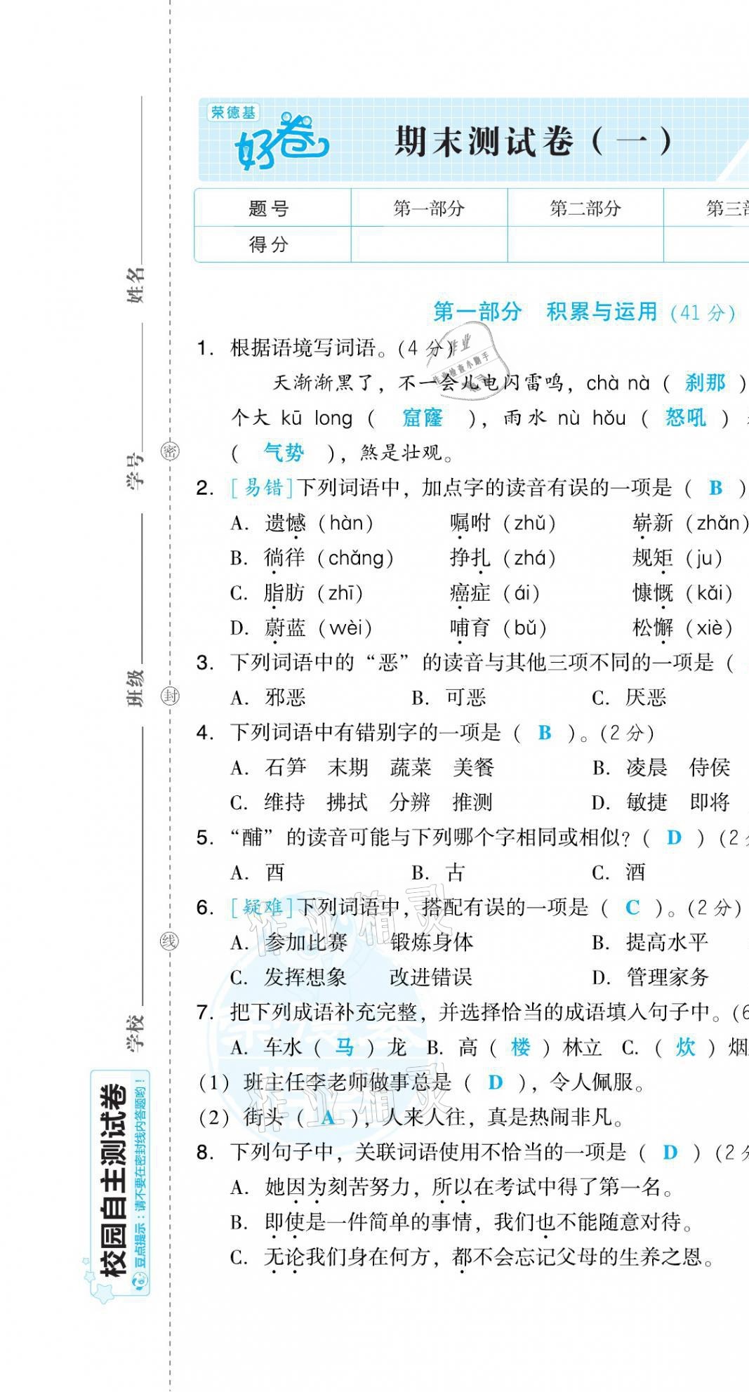 注:目前有些书本章节名称可能整理的还不是很完善,但都是按照顺序排列的,请同学们按照顺序仔细查找。练习册 2021年好卷四年级语文下册人教版福建专版 答案主要是用来给同学们做完题方便对答案用的,请勿直接抄袭。