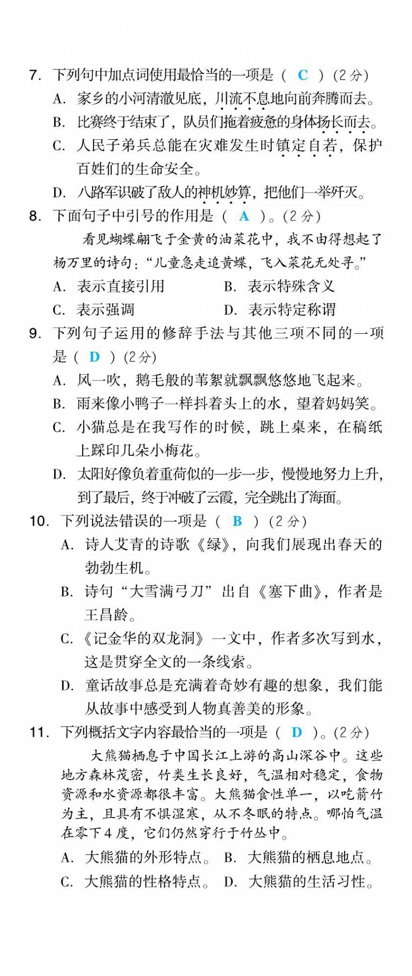 注:目前有些书本章节名称可能整理的还不是很完善,但都是按照顺序排列的,请同学们按照顺序仔细查找。练习册 2021年好卷四年级语文下册人教版福建专版 答案主要是用来给同学们做完题方便对答案用的,请勿直接抄袭。