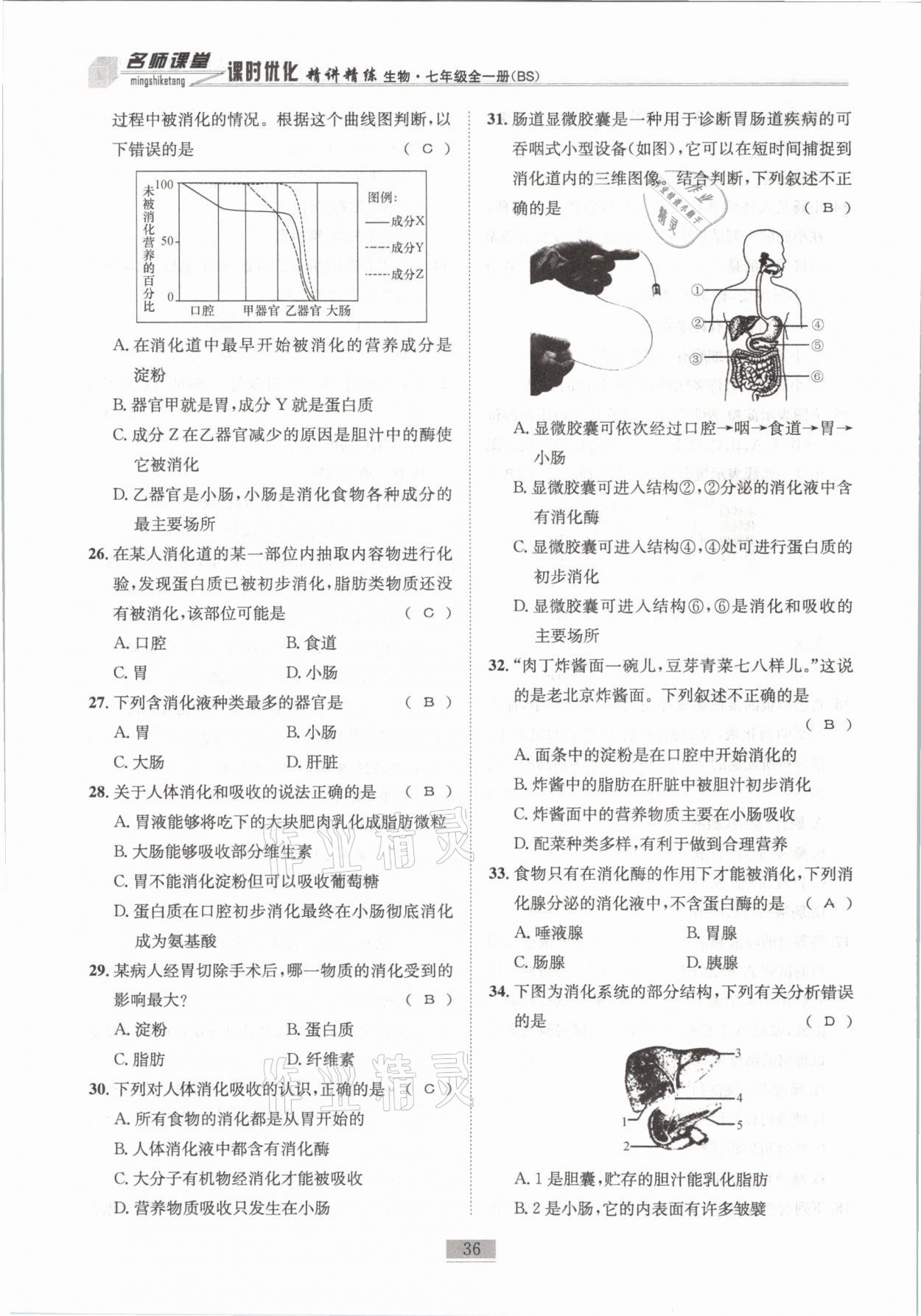 注:目前有些书本章节名称可能整理的还不是很完善,但都是按照顺序排列的,请同学们按照顺序仔细查找。练习册 2021年名师课堂课时优化精讲精练七年级生物全一册北师大版 答案主要是用来给同学们做完题方便对答案用的,请勿直接抄袭。