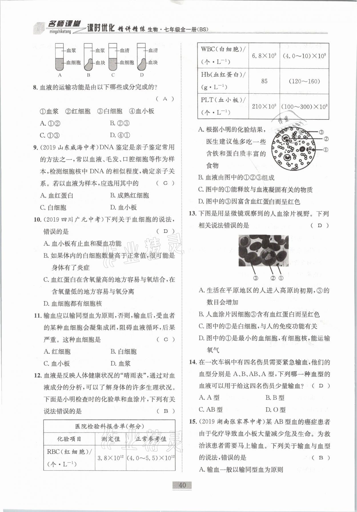 注:目前有些书本章节名称可能整理的还不是很完善,但都是按照顺序排列的,请同学们按照顺序仔细查找。练习册 2021年名师课堂课时优化精讲精练七年级生物全一册北师大版 答案主要是用来给同学们做完题方便对答案用的,请勿直接抄袭。