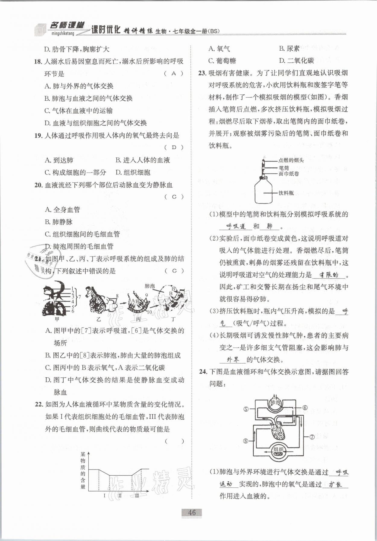 注:目前有些书本章节名称可能整理的还不是很完善,但都是按照顺序排列的,请同学们按照顺序仔细查找。练习册 2021年名师课堂课时优化精讲精练七年级生物全一册北师大版 答案主要是用来给同学们做完题方便对答案用的,请勿直接抄袭。