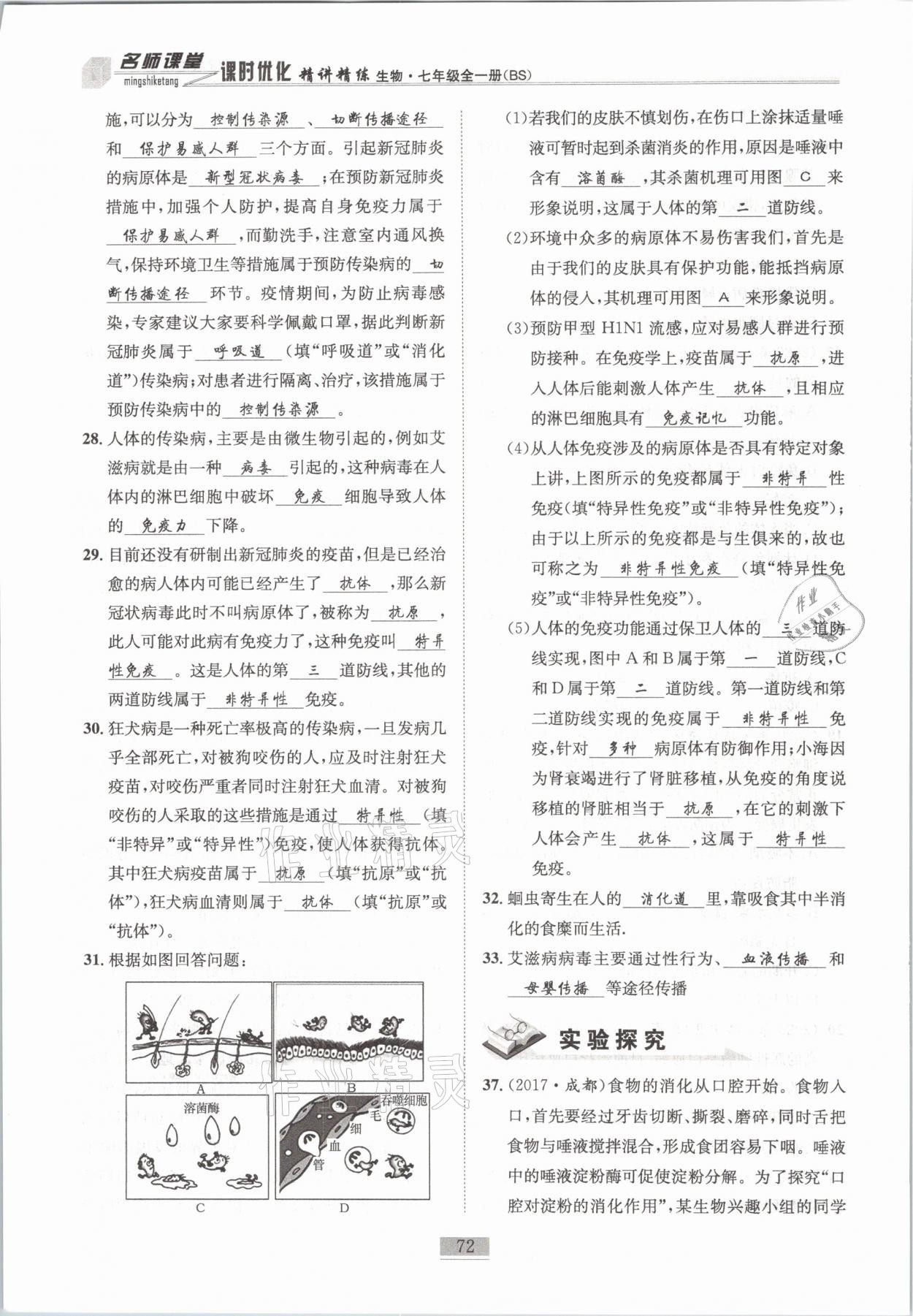 注:目前有些书本章节名称可能整理的还不是很完善,但都是按照顺序排列的,请同学们按照顺序仔细查找。练习册 2021年名师课堂课时优化精讲精练七年级生物全一册北师大版 答案主要是用来给同学们做完题方便对答案用的,请勿直接抄袭。