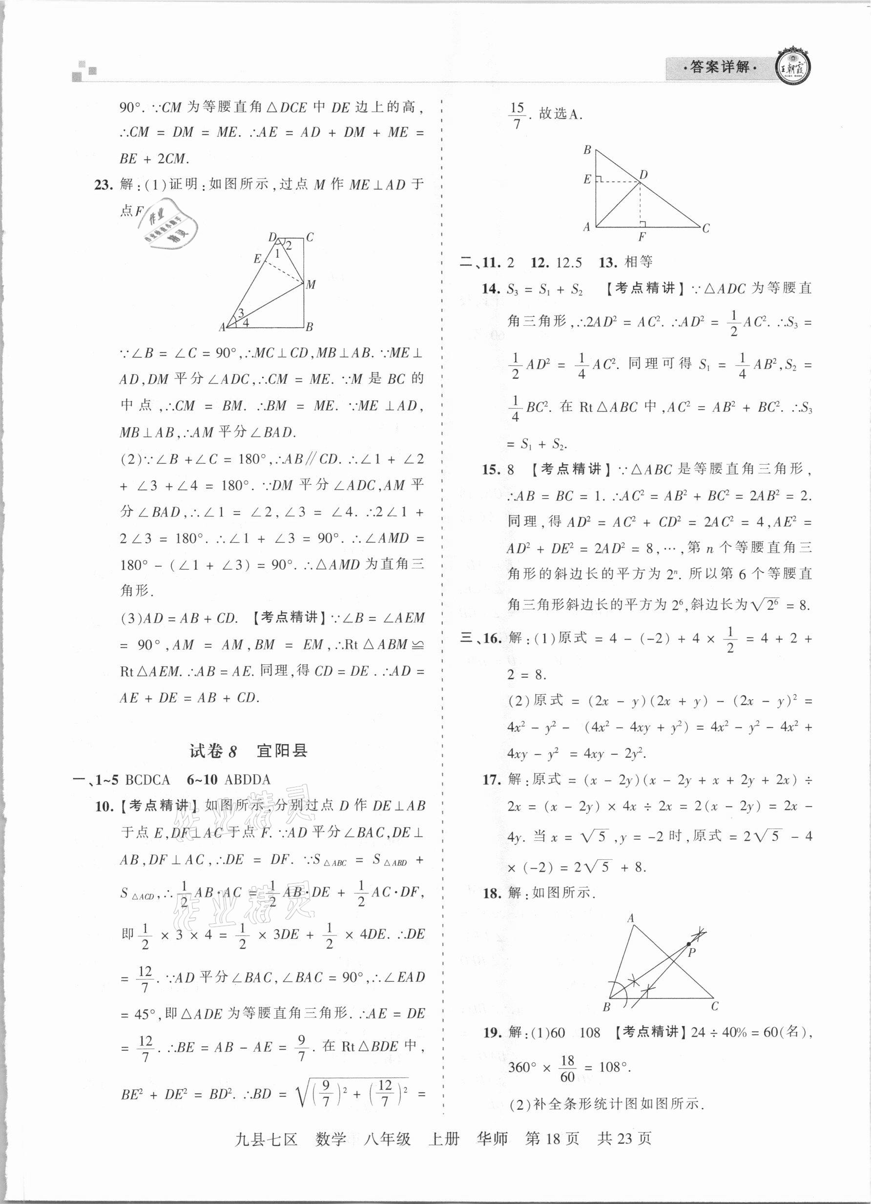 注:目前有些书本章节名称可能整理的还不是很完善,但都是按照顺序排列的,请同学们按照顺序仔细查找。练习册 2021年王朝霞各地期末试卷精选八年级数学上册华师大版九县七区专版 答案主要是用来给同学们做完题方便对答案用的,请勿直接抄袭。