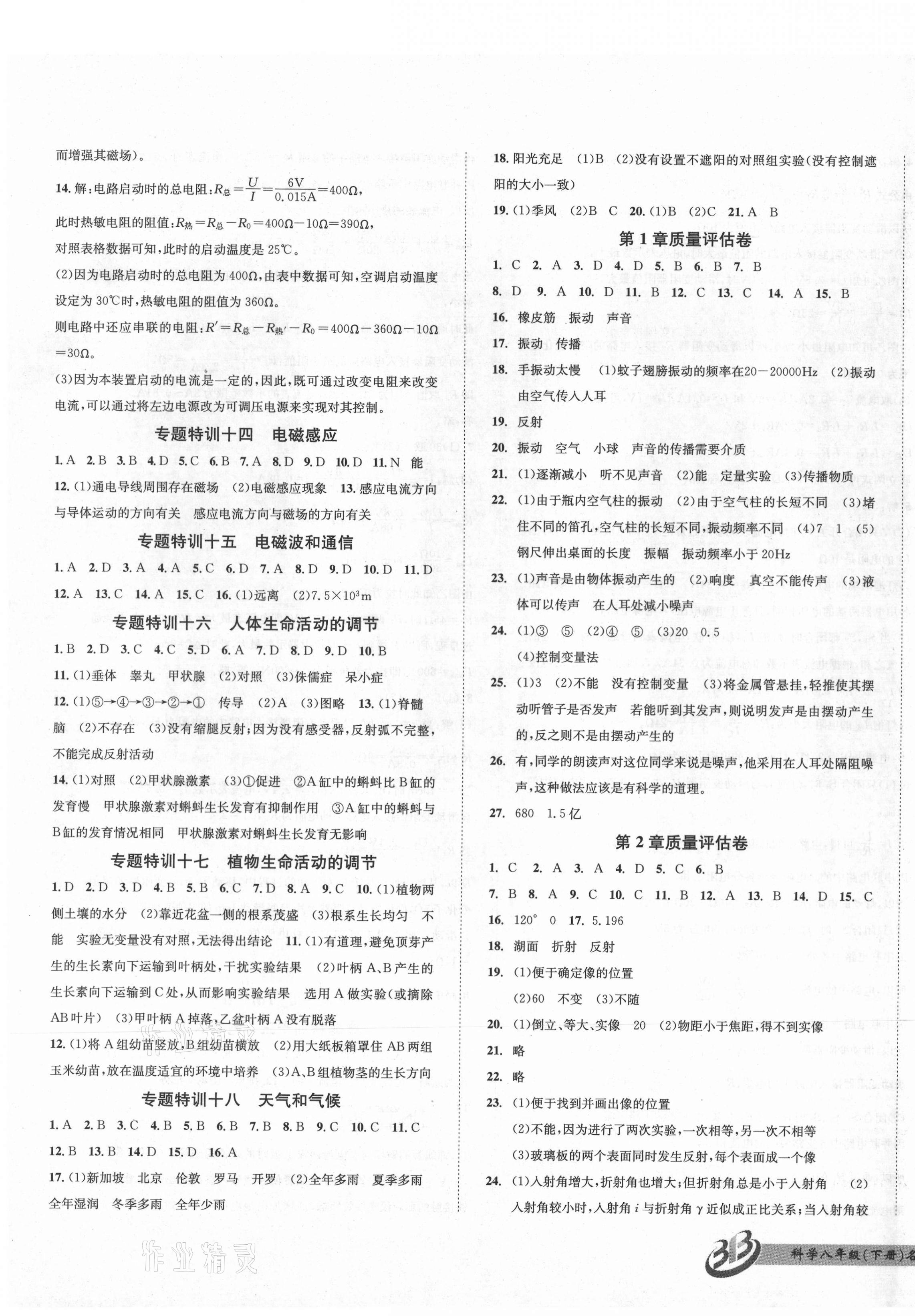 注:目前有些书本章节名称可能整理的还不是很完善,但都是按照顺序排列的,请同学们按照顺序仔细查找。练习册 2021年名师金典BFB初中课时优化八年级科学下册华师大版 答案主要是用来给同学们做完题方便对答案用的,请勿直接抄袭。