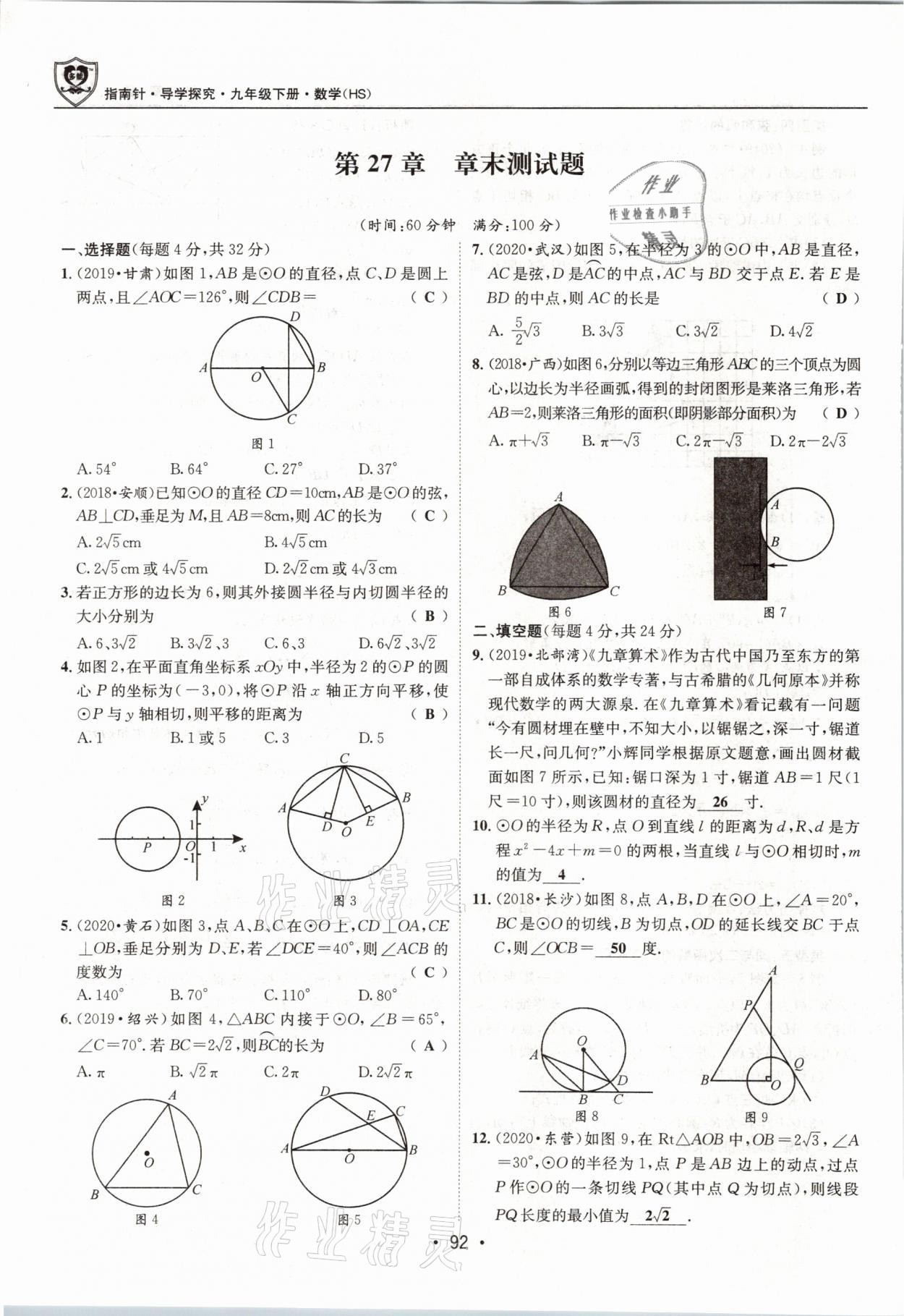注:目前有些书本章节名称可能整理的还不是很完善,但都是按照顺序排列的,请同学们按照顺序仔细查找。练习册 2021年指南针导学探究九年级数学下册华师大版 答案主要是用来给同学们做完题方便对答案用的,请勿直接抄袭。