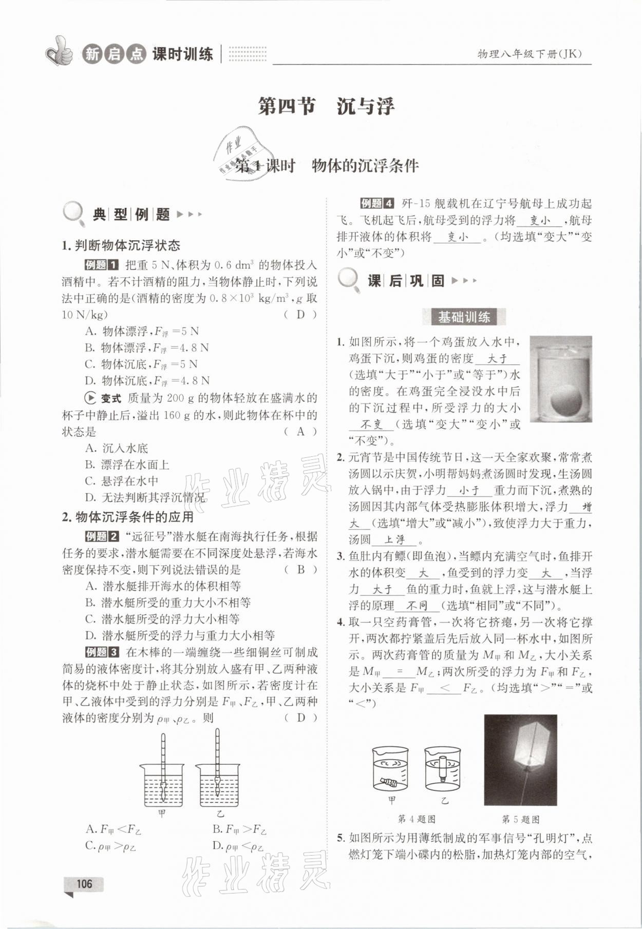 注:目前有些书本章节名称可能整理的还不是很完善,但都是按照顺序排列的,请同学们按照顺序仔细查找。练习册 2021年新启点课时训练八年级物理下册教科版 答案主要是用来给同学们做完题方便对答案用的,请勿直接抄袭。
