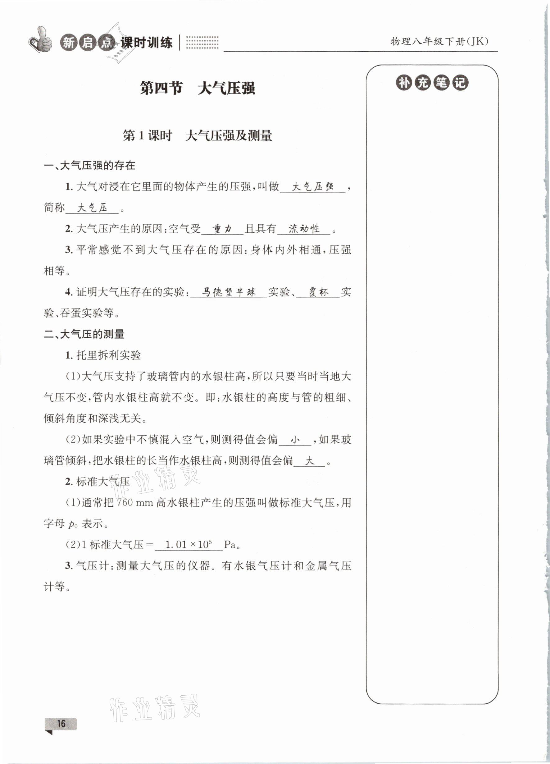 注:目前有些书本章节名称可能整理的还不是很完善,但都是按照顺序排列的,请同学们按照顺序仔细查找。练习册 2021年新启点课时训练八年级物理下册教科版 答案主要是用来给同学们做完题方便对答案用的,请勿直接抄袭。