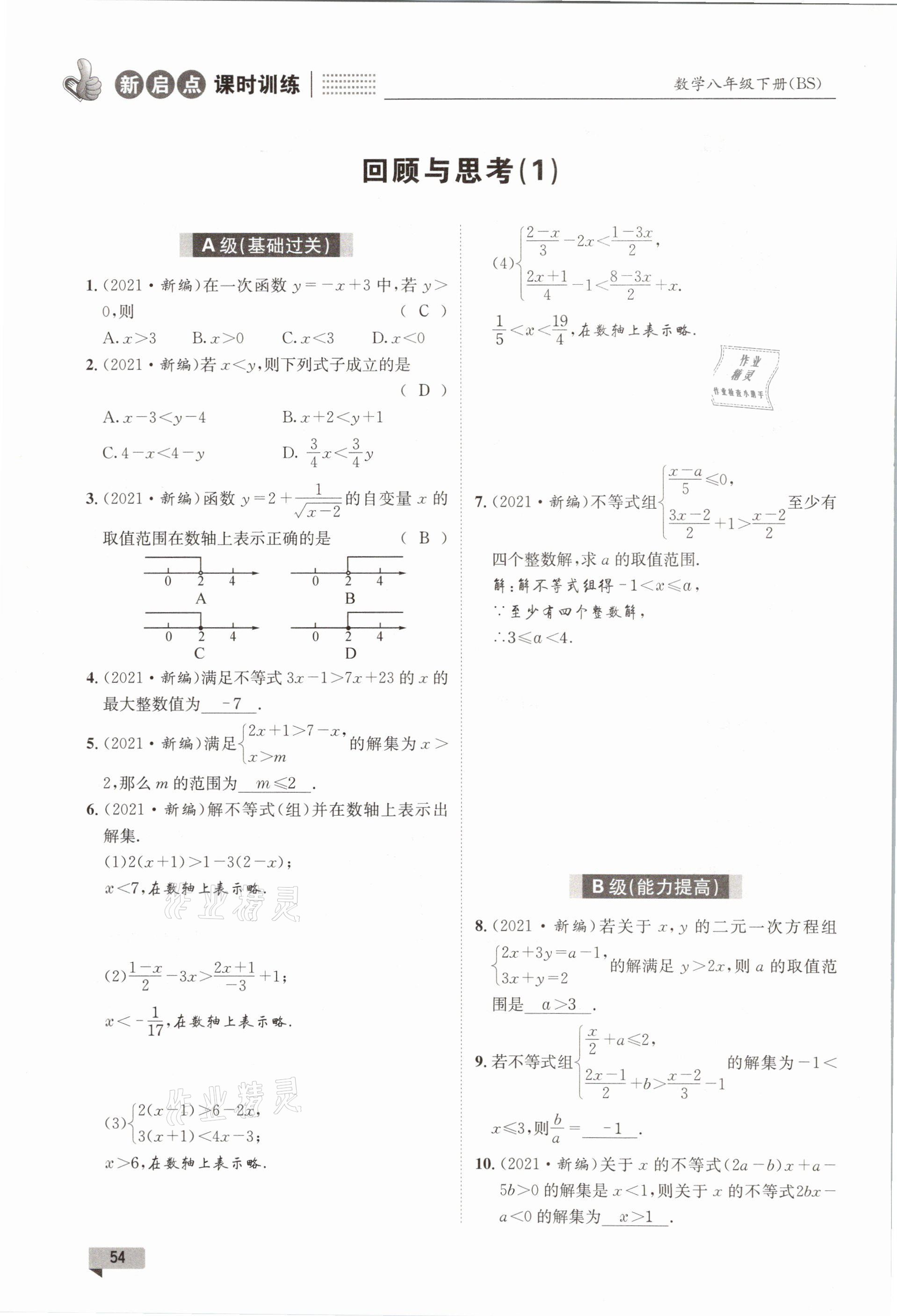 注:目前有些书本章节名称可能整理的还不是很完善,但都是按照顺序排列的,请同学们按照顺序仔细查找。练习册 2021年新启点课时训练八年级数学下册北师大版 答案主要是用来给同学们做完题方便对答案用的,请勿直接抄袭。