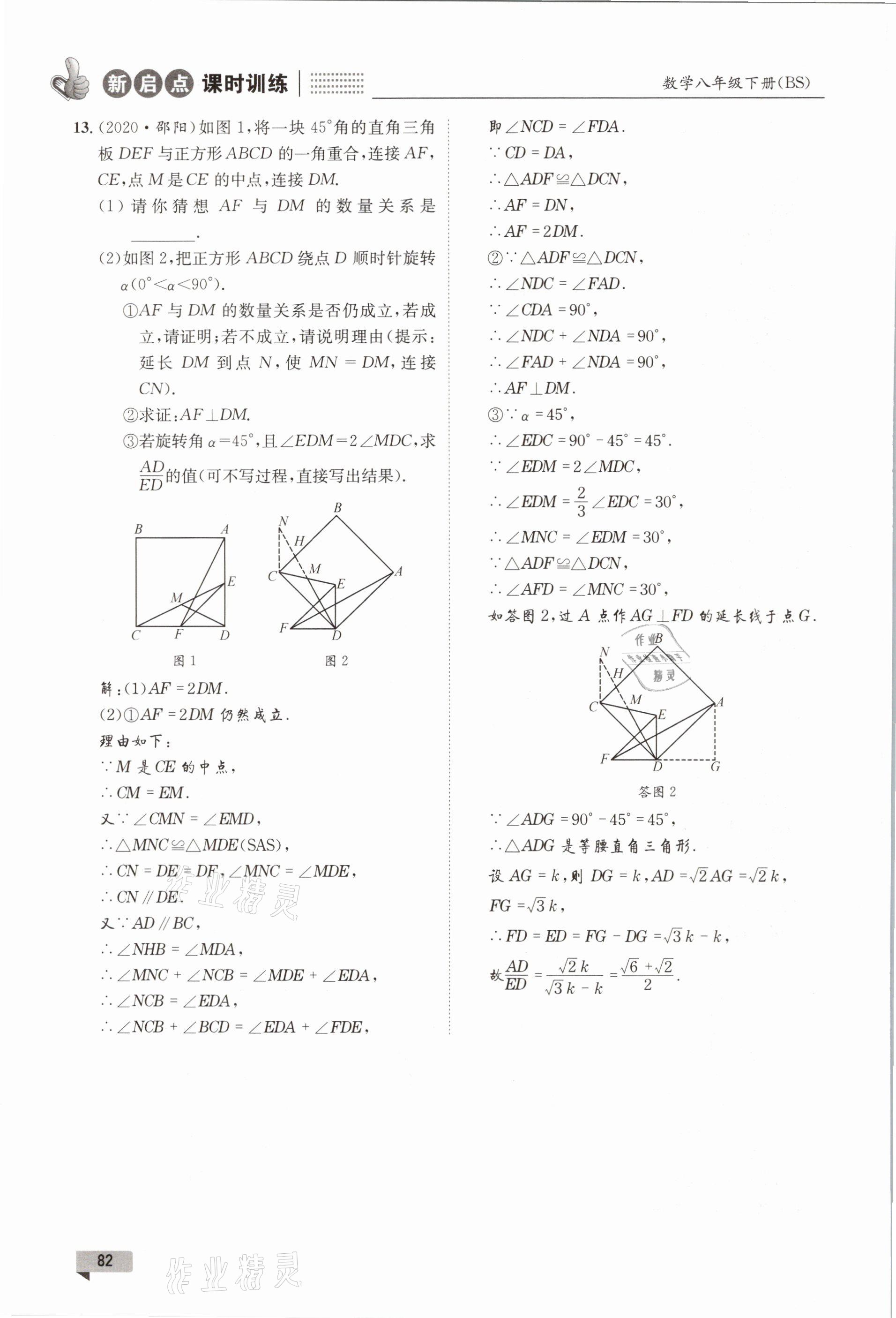 注:目前有些书本章节名称可能整理的还不是很完善,但都是按照顺序排列的,请同学们按照顺序仔细查找。练习册 2021年新启点课时训练八年级数学下册北师大版 答案主要是用来给同学们做完题方便对答案用的,请勿直接抄袭。