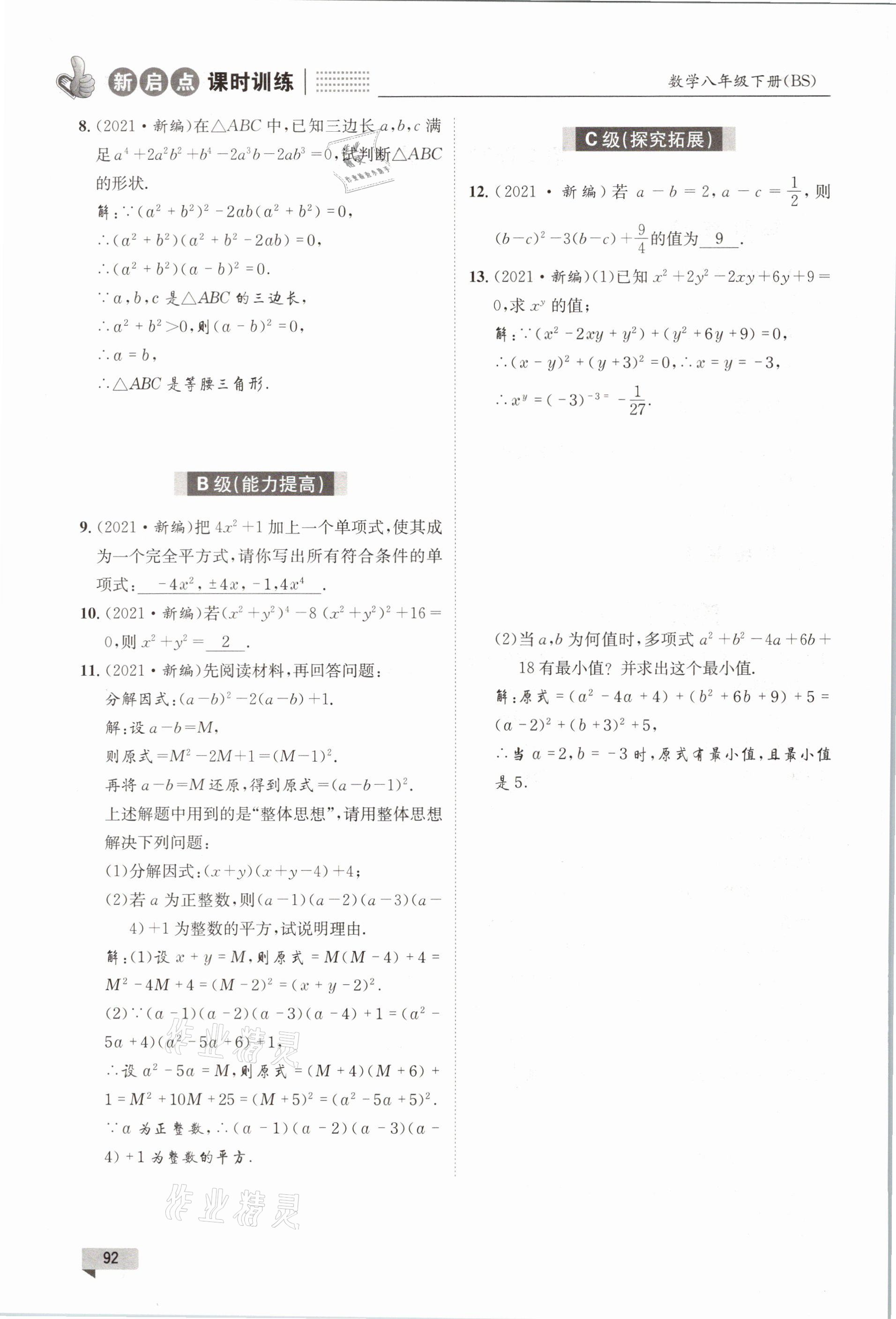 注:目前有些书本章节名称可能整理的还不是很完善,但都是按照顺序排列的,请同学们按照顺序仔细查找。练习册 2021年新启点课时训练八年级数学下册北师大版 答案主要是用来给同学们做完题方便对答案用的,请勿直接抄袭。