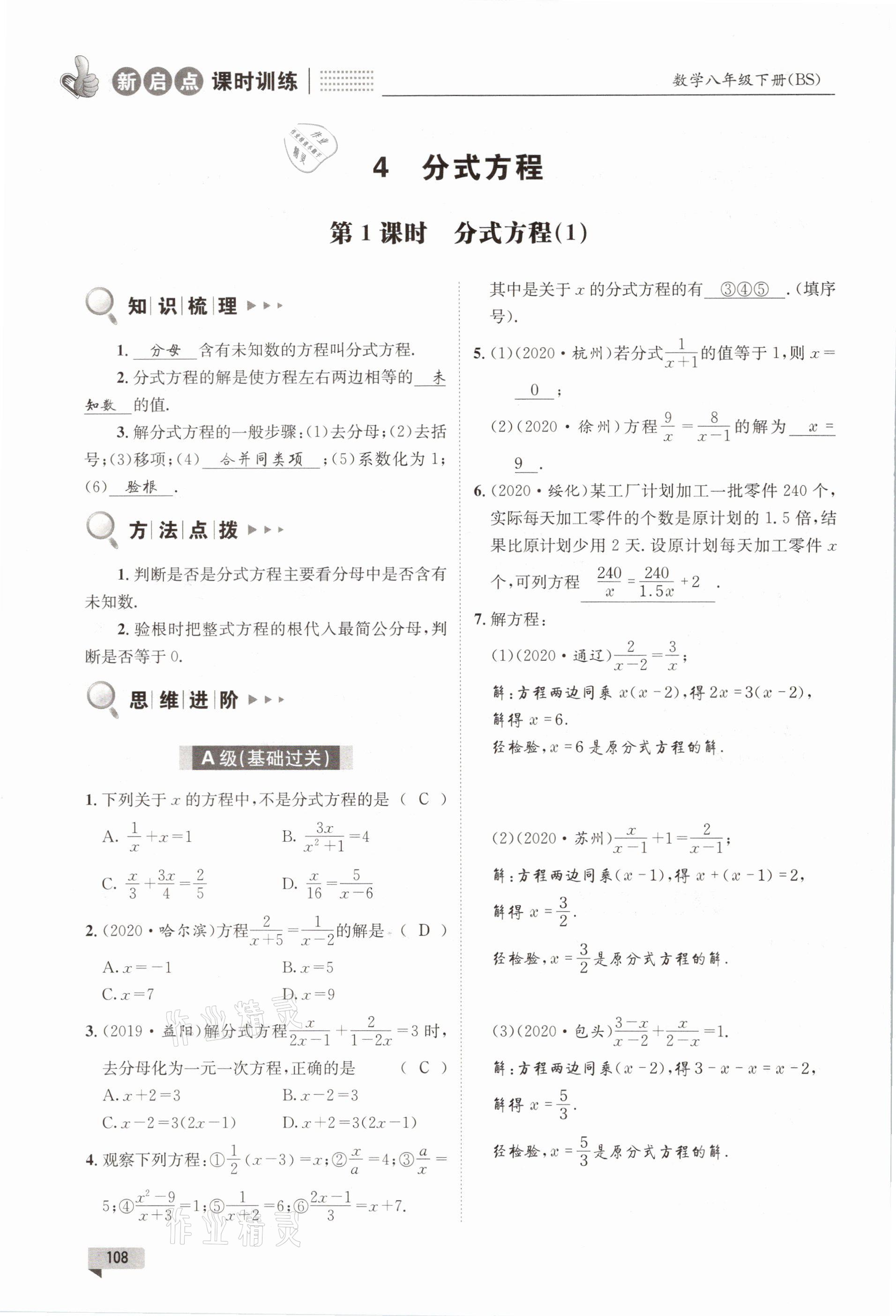 注:目前有些书本章节名称可能整理的还不是很完善,但都是按照顺序排列的,请同学们按照顺序仔细查找。练习册 2021年新启点课时训练八年级数学下册北师大版 答案主要是用来给同学们做完题方便对答案用的,请勿直接抄袭。