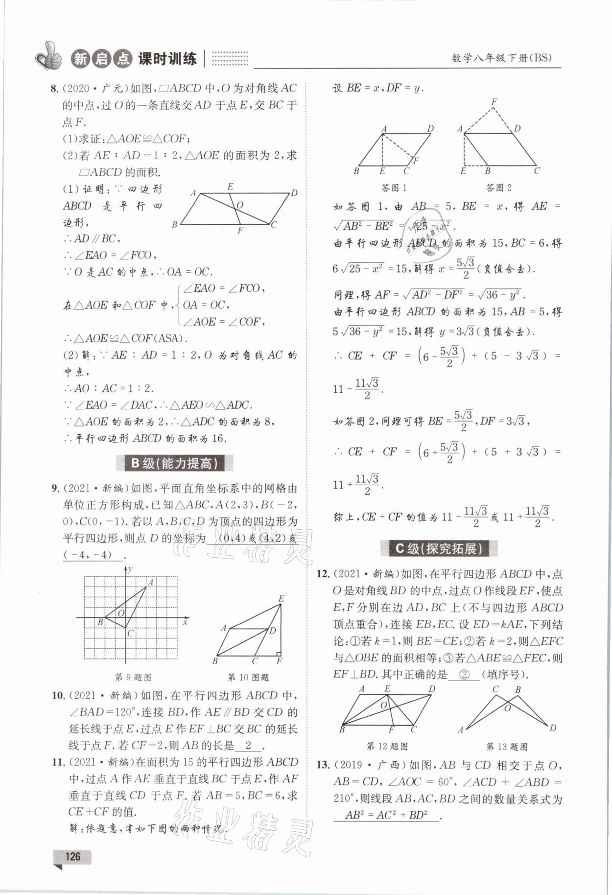 注:目前有些书本章节名称可能整理的还不是很完善,但都是按照顺序排列的,请同学们按照顺序仔细查找。练习册 2021年新启点课时训练八年级数学下册北师大版 答案主要是用来给同学们做完题方便对答案用的,请勿直接抄袭。