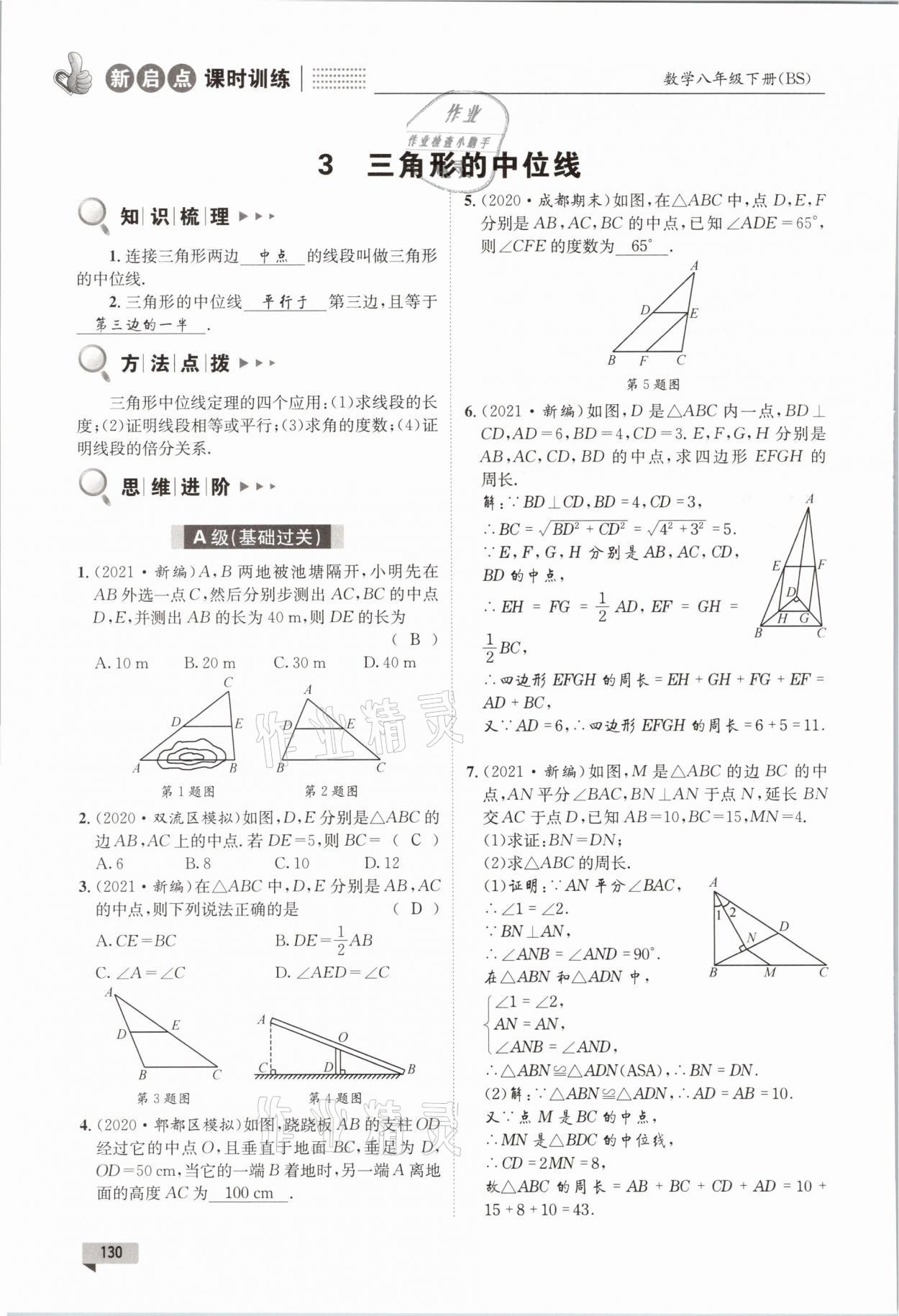 注:目前有些书本章节名称可能整理的还不是很完善,但都是按照顺序排列的,请同学们按照顺序仔细查找。练习册 2021年新启点课时训练八年级数学下册北师大版 答案主要是用来给同学们做完题方便对答案用的,请勿直接抄袭。