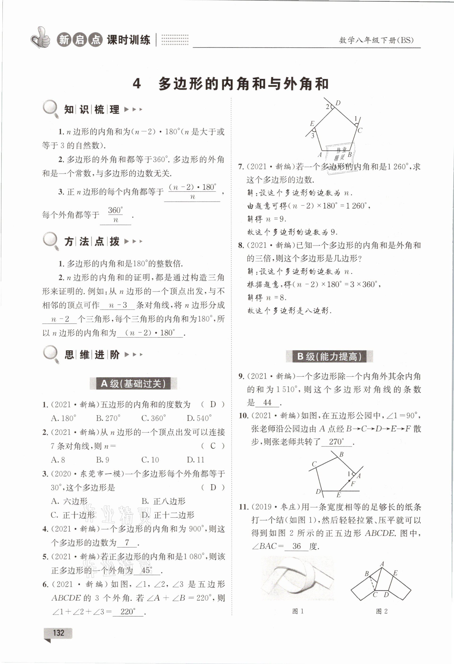 注:目前有些书本章节名称可能整理的还不是很完善,但都是按照顺序排列的,请同学们按照顺序仔细查找。练习册 2021年新启点课时训练八年级数学下册北师大版 答案主要是用来给同学们做完题方便对答案用的,请勿直接抄袭。