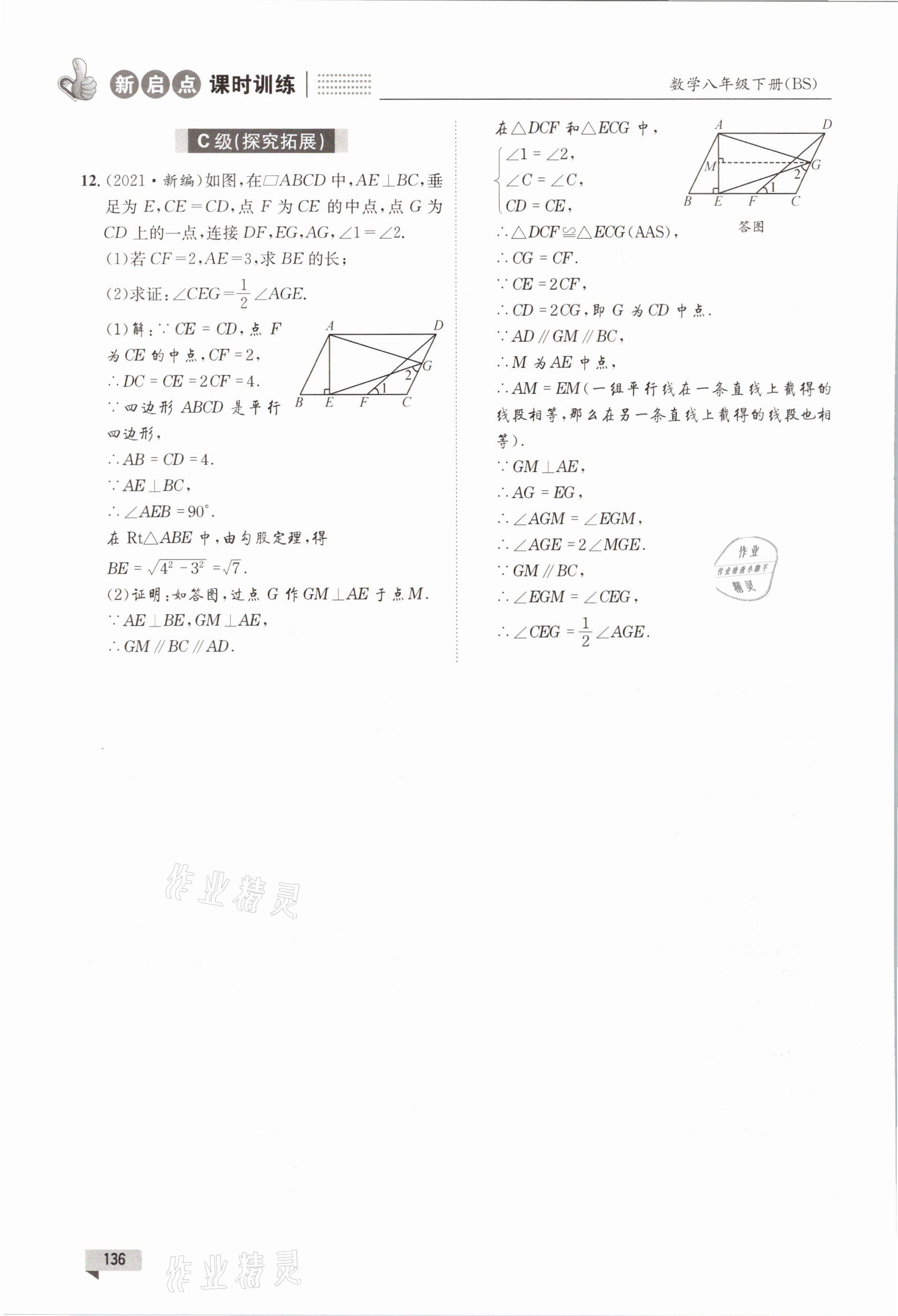 注:目前有些书本章节名称可能整理的还不是很完善,但都是按照顺序排列的,请同学们按照顺序仔细查找。练习册 2021年新启点课时训练八年级数学下册北师大版 答案主要是用来给同学们做完题方便对答案用的,请勿直接抄袭。
