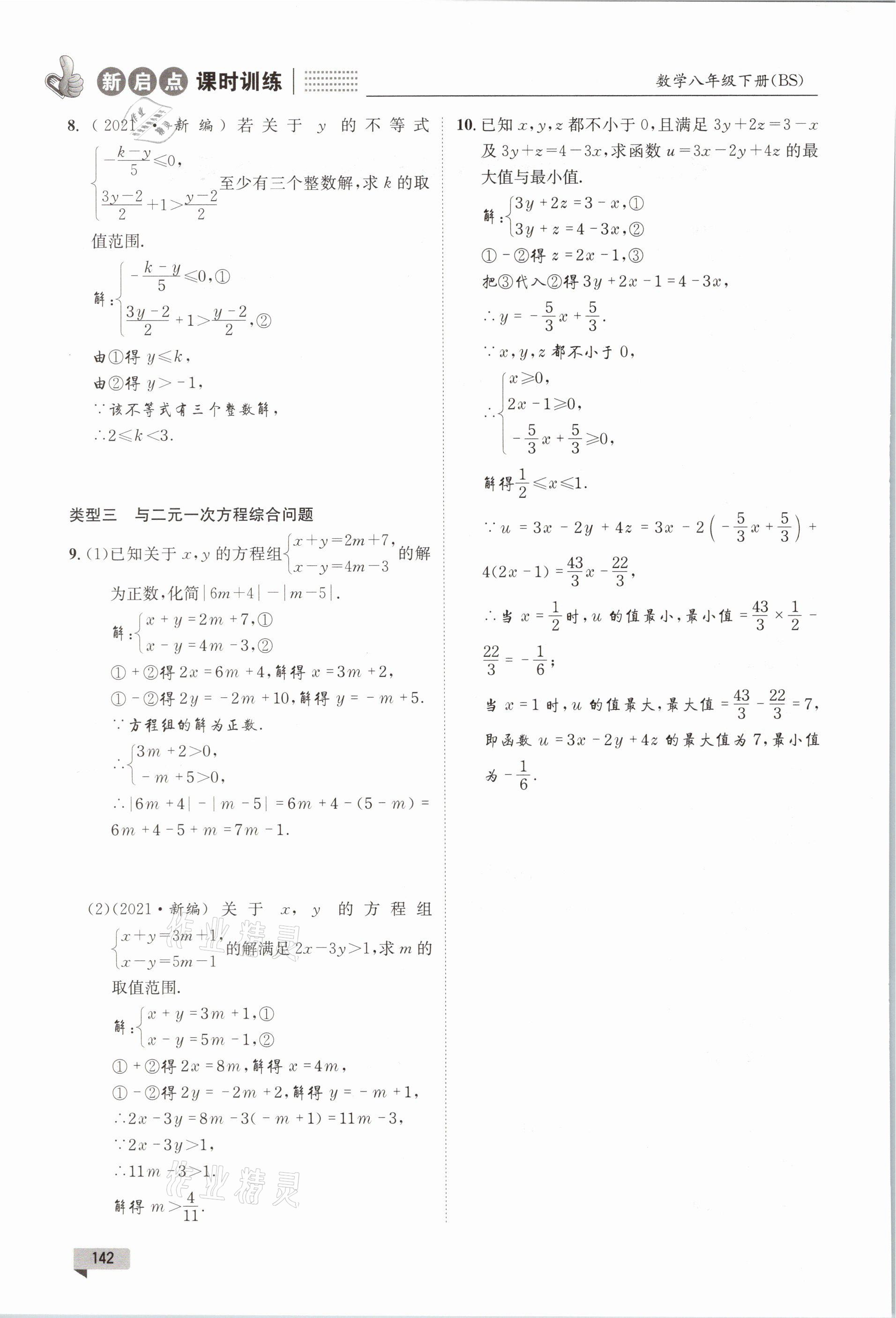 2021年新启点课时训练八年级数学下册北师大版