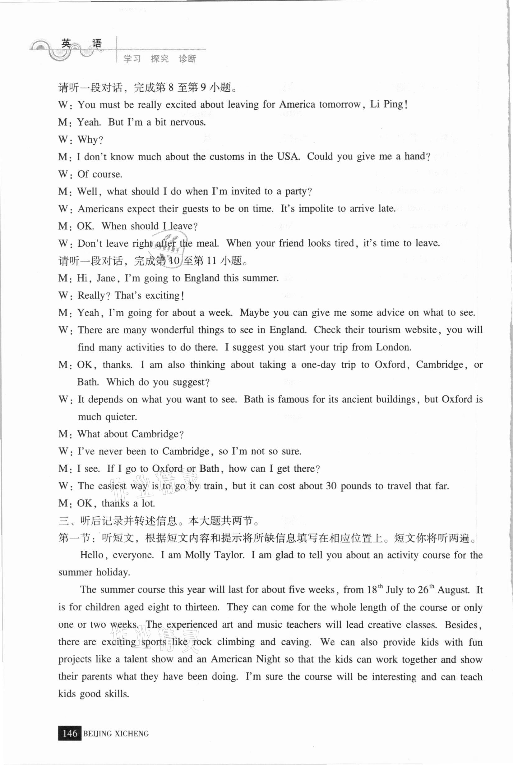 注:目前有些书本章节名称可能整理的还不是很完善,但都是按照顺序排列的,请同学们按照顺序仔细查找。练习册 2021年学习探究诊断八年级英语下册外研版 答案主要是用来给同学们做完题方便对答案用的,请勿直接抄袭。