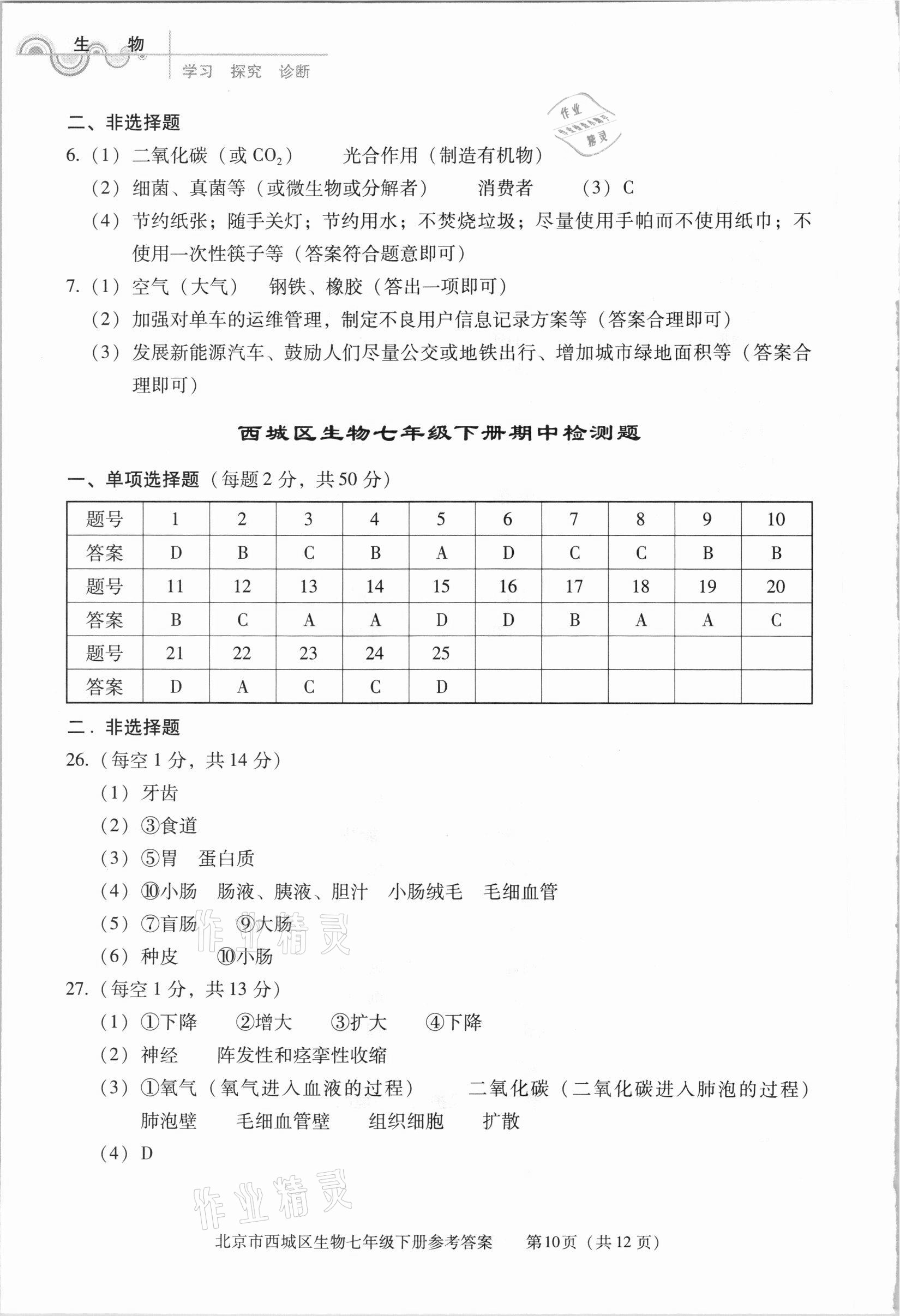 注:目前有些书本章节名称可能整理的还不是很完善,但都是按照顺序排列的,请同学们按照顺序仔细查找。练习册 2021年学习探究诊断七年级生物下册人教版 答案主要是用来给同学们做完题方便对答案用的,请勿直接抄袭。