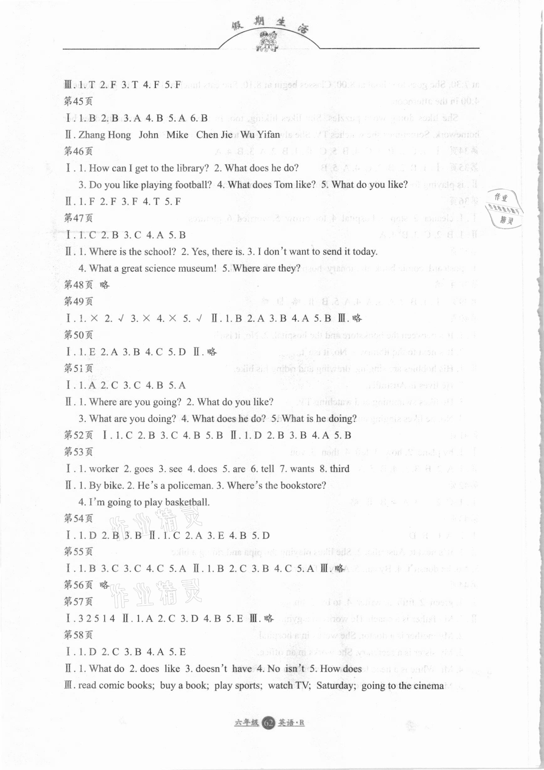 注:目前有些书本章节名称可能整理的还不是很完善,但都是按照顺序排列的,请同学们按照顺序仔细查找。练习册 2021年假期生活六年级英语人教PEP版方圆电子音像出版社 答案主要是用来给同学们做完题方便对答案用的,请勿直接抄袭。