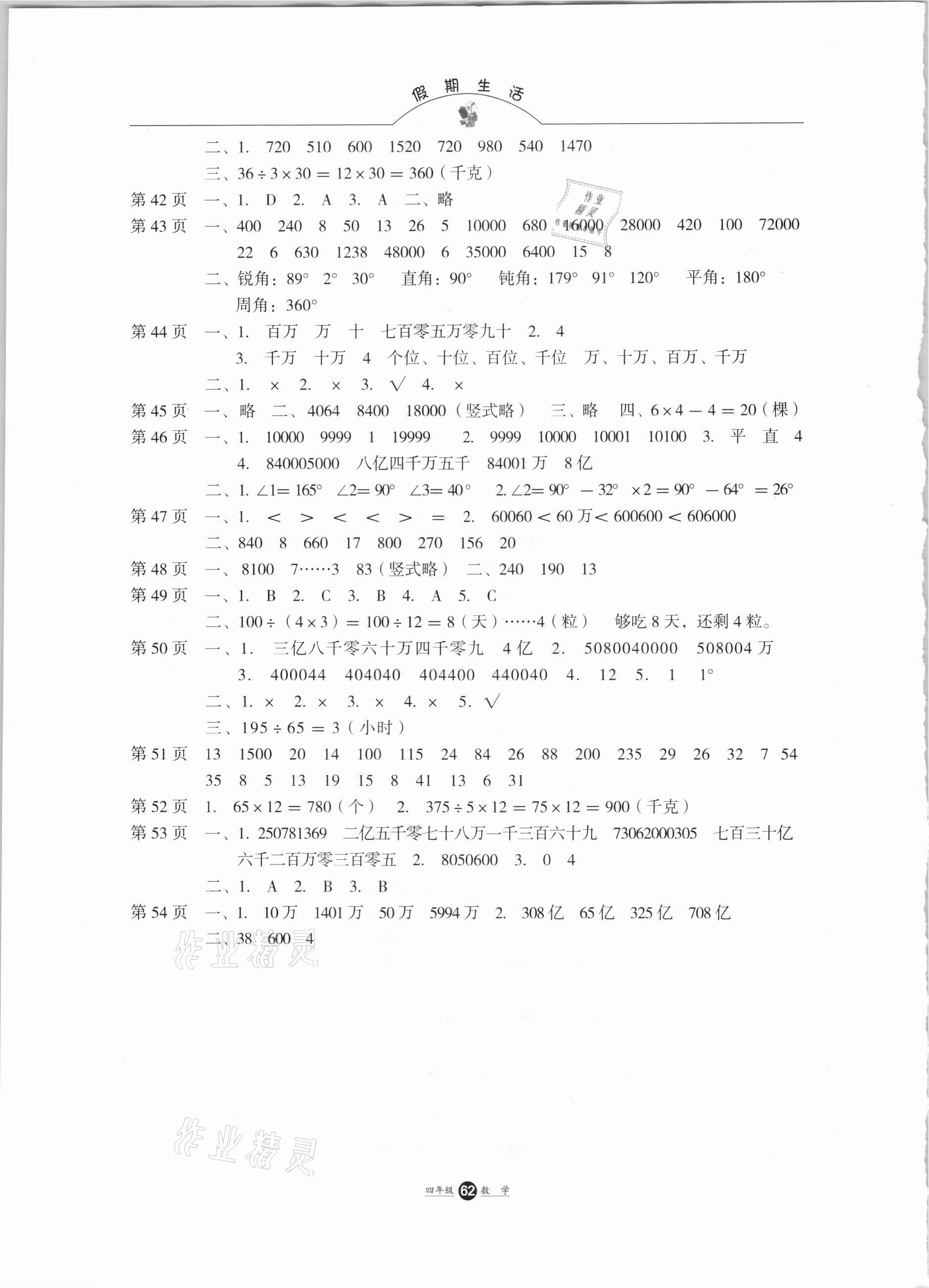 2021年假期生活四年级数学冀教版方圆电子音像出版社