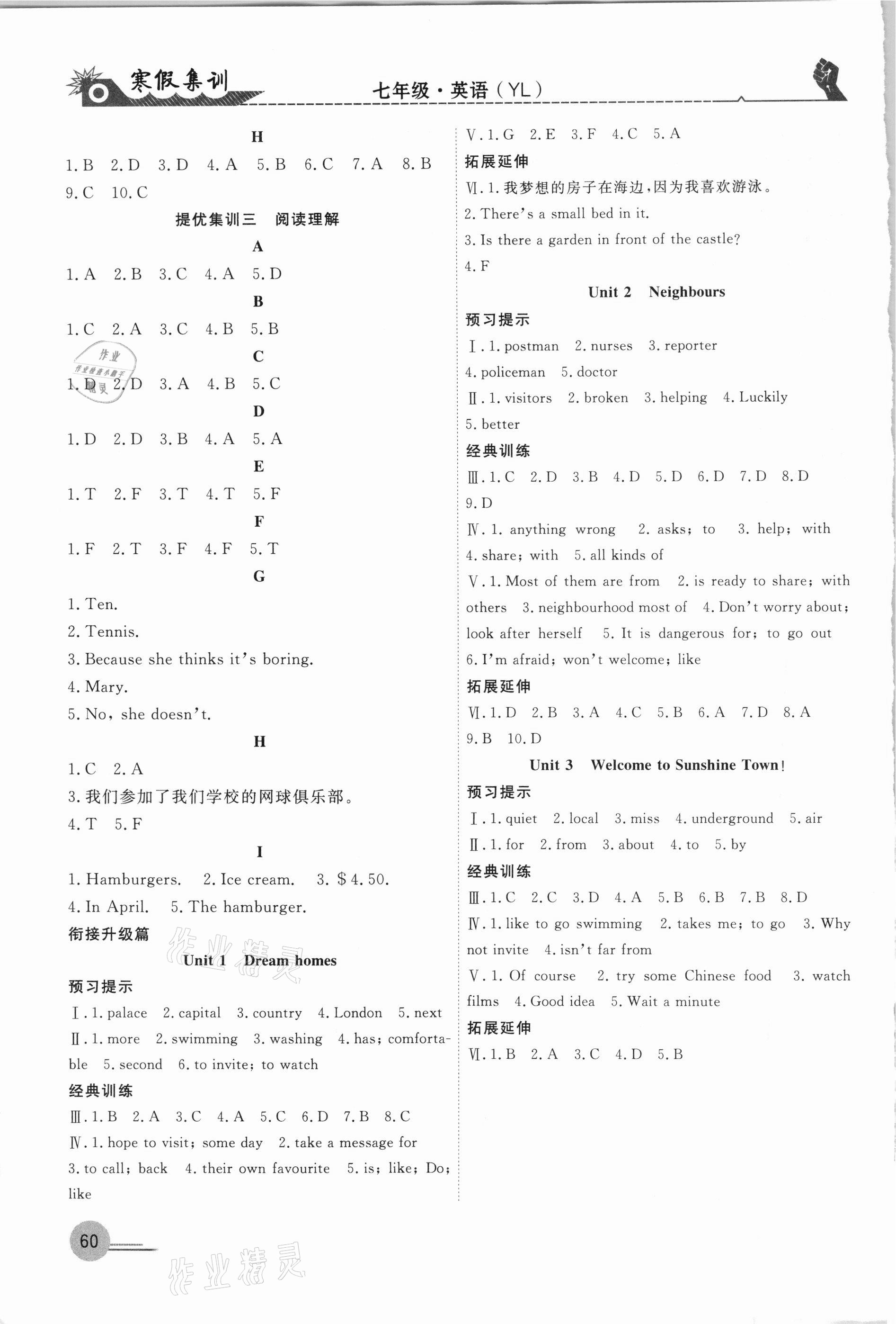 注:目前有些书本章节名称可能整理的还不是很完善,但都是按照顺序排列的,请同学们按照顺序仔细查找。练习册 2021年寒假集训七年级英语译林版合肥工业大学出版社 答案主要是用来给同学们做完题方便对答案用的,请勿直接抄袭。