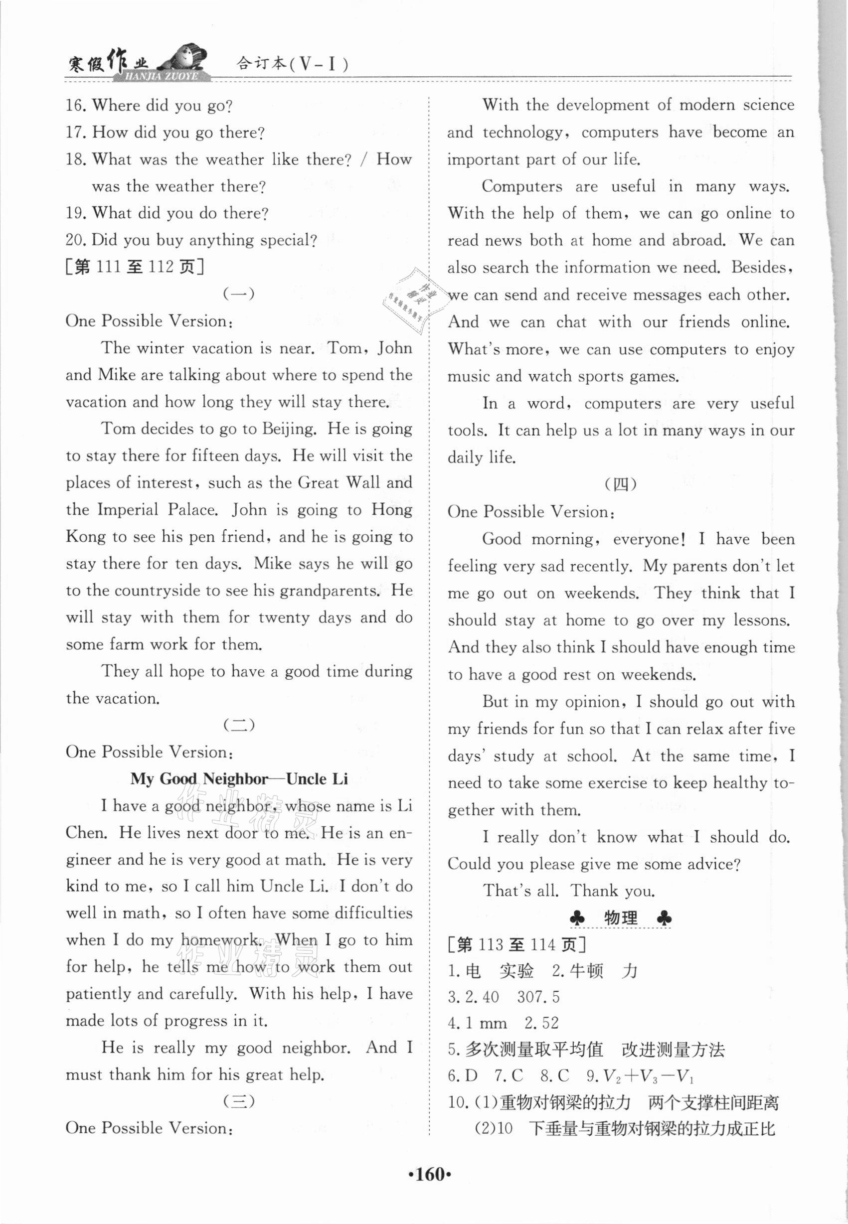 注:目前有些书本章节名称可能整理的还不是很完善,但都是按照顺序排列的,请同学们按照顺序仔细查找。练习册 2021年寒假作业八年级合订本江西高校出版社 答案主要是用来给同学们做完题方便对答案用的,请勿直接抄袭。