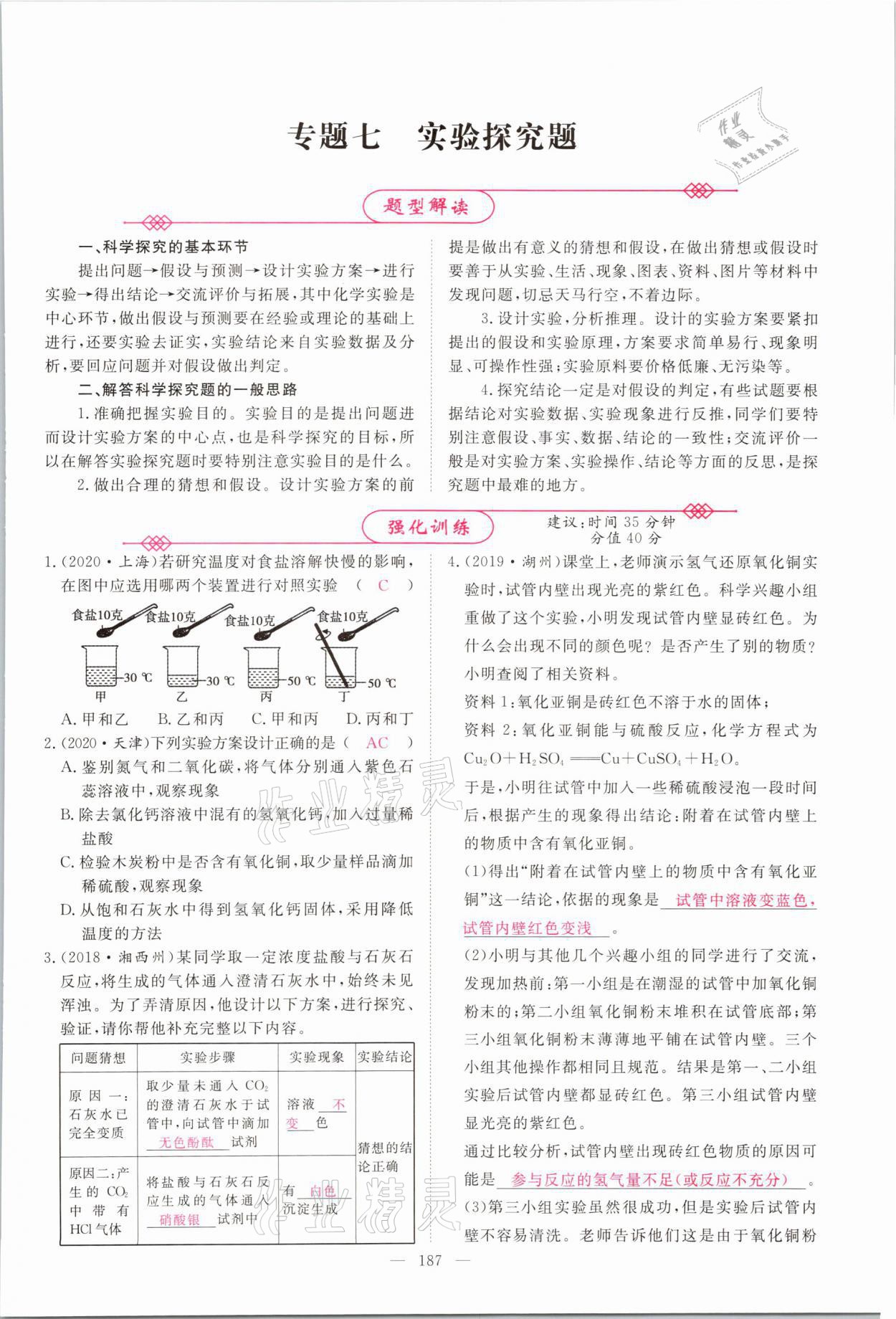 2021年中学生学习报试题与研究化学河南专版